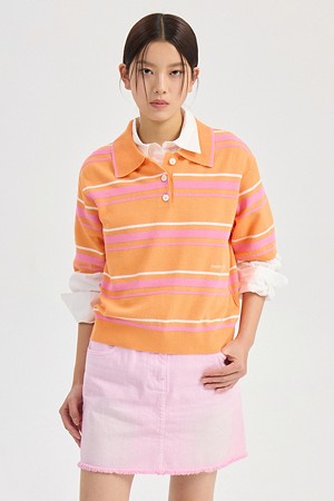 Stripe Collar Pullover (orange)