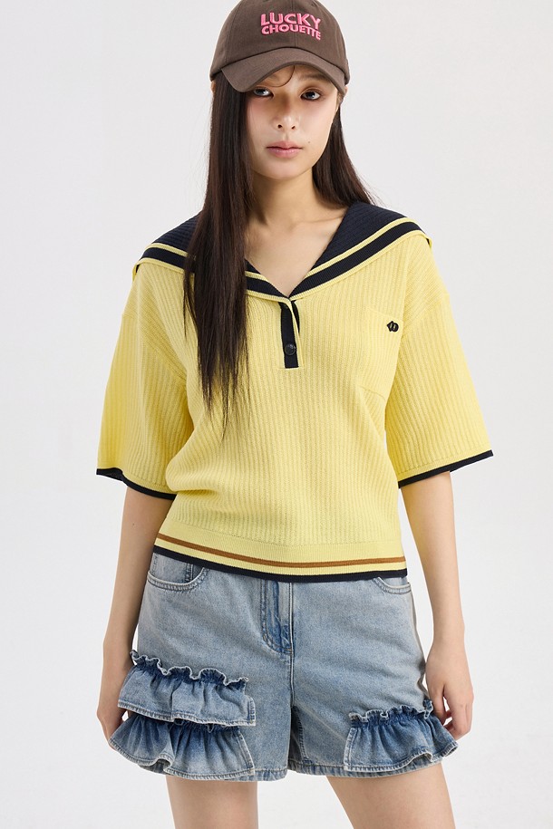 Sailor Short Sleeve Knit Pullover (light yellow)
