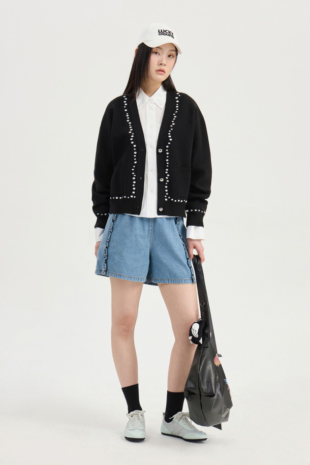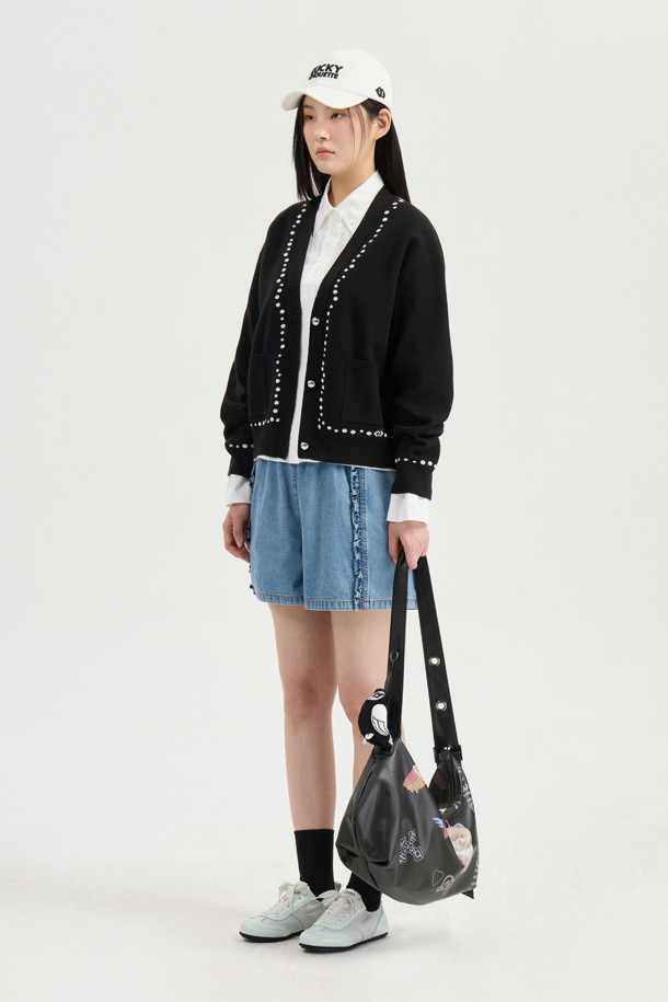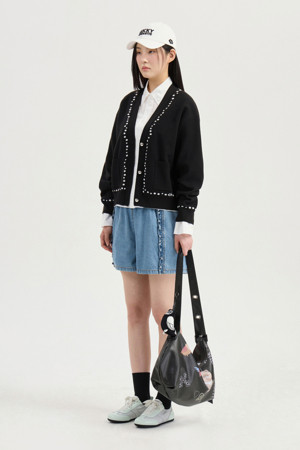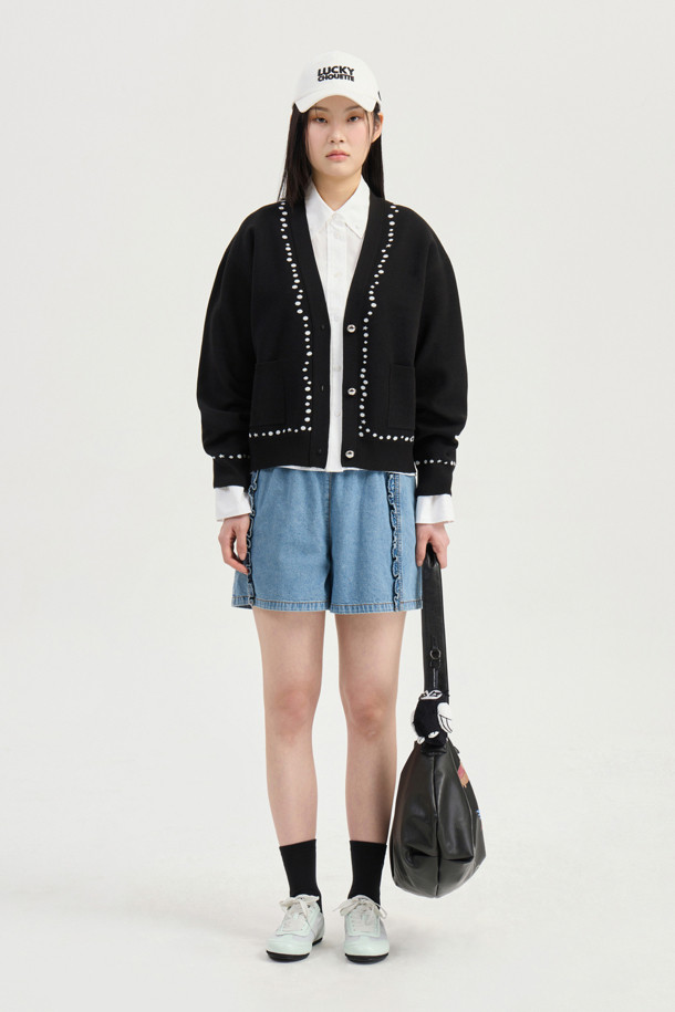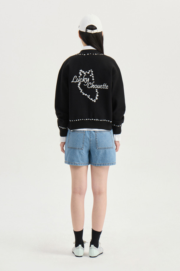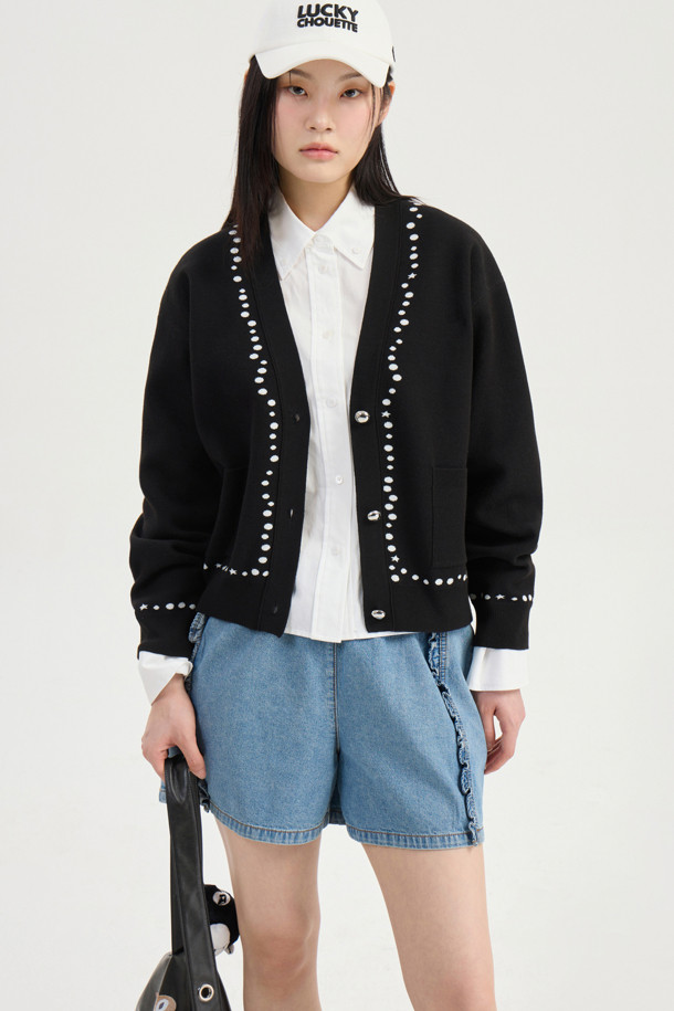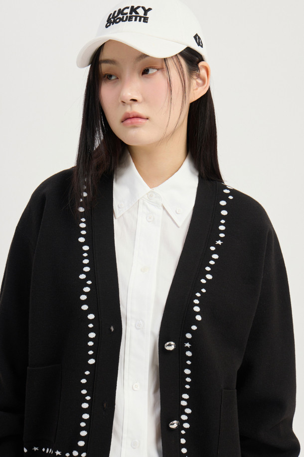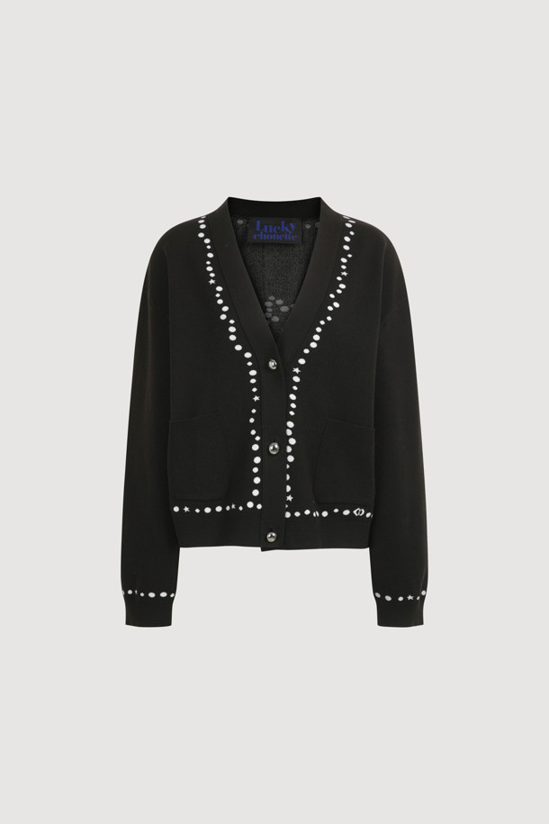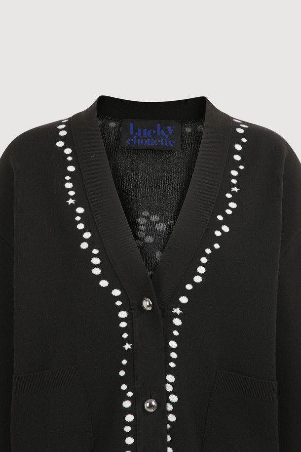 Dot Line Back Chouette Knit Cardigan (Black)