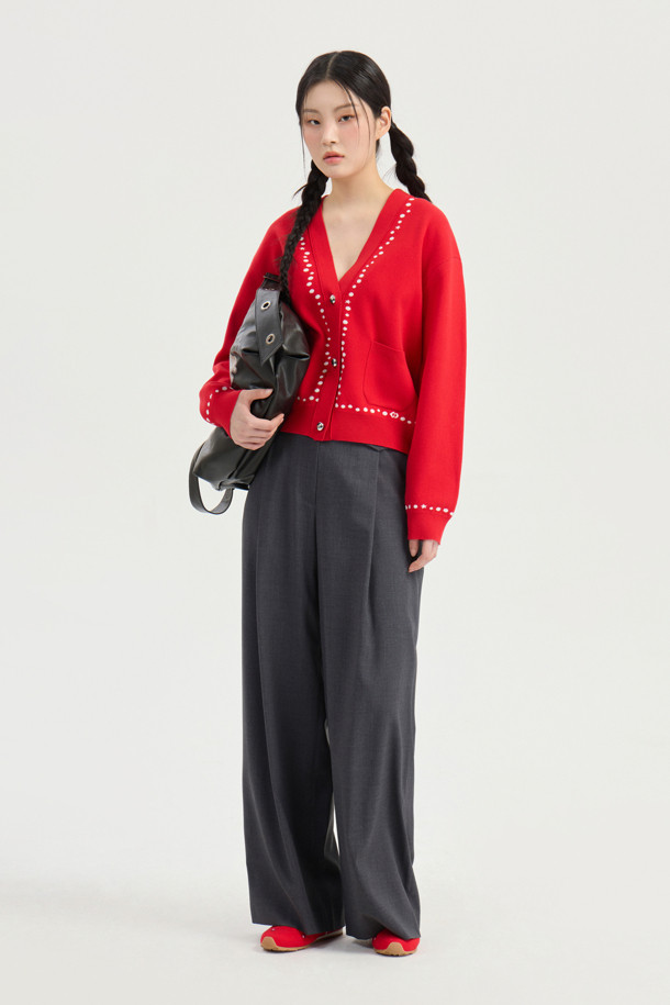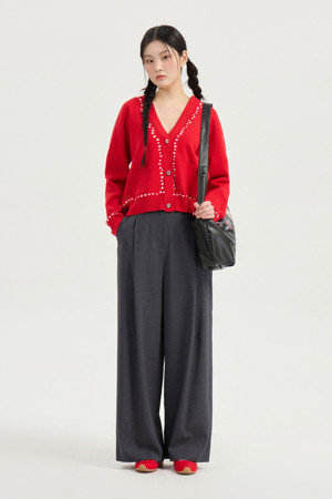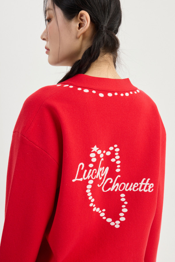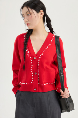 Dot Line Back Chouette Knit Cardigan (red)