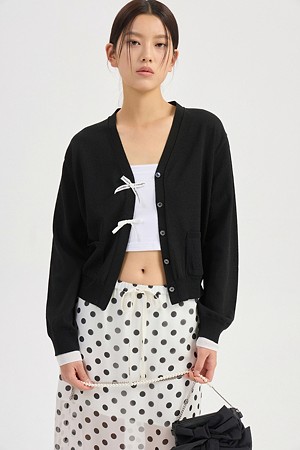 Ribbon Point Knit Cardigan (black)