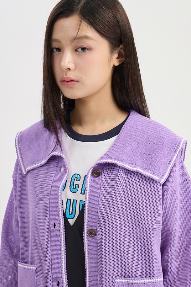 Mesh Sailor Knit Cardigan (violet)