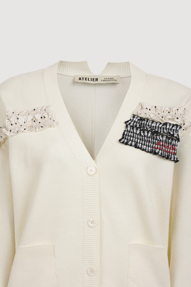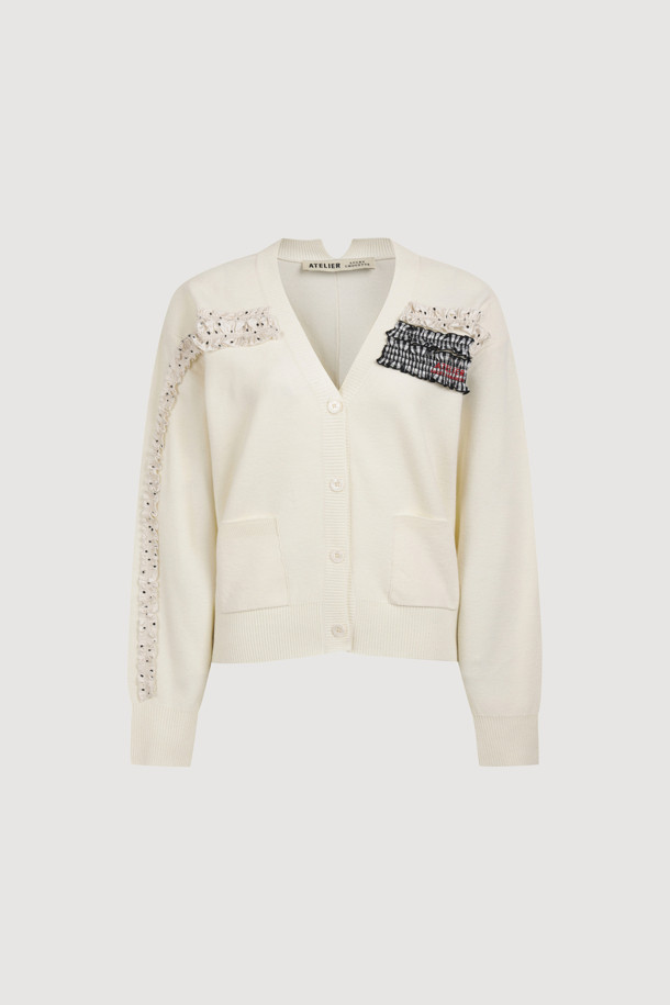 [Atelier] Woven Frill Knit Cardigan (ivory)