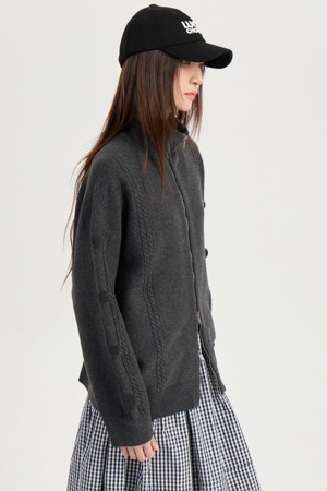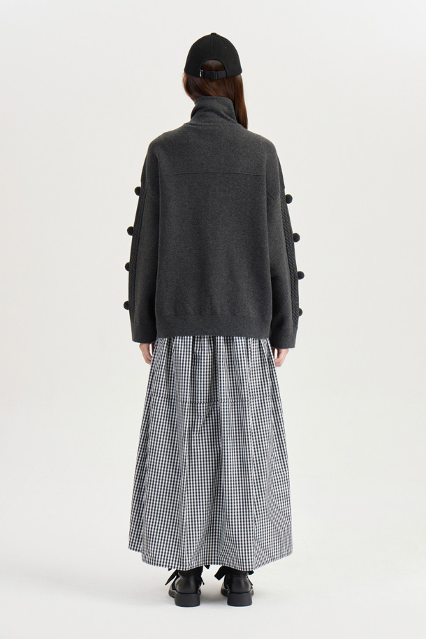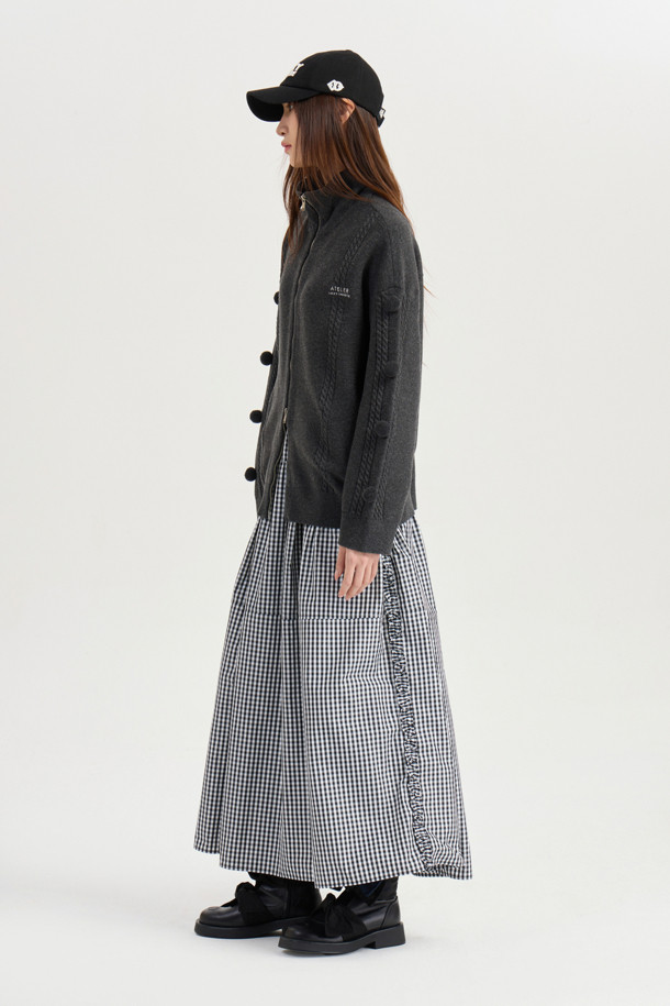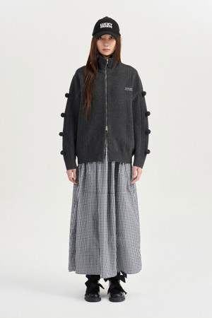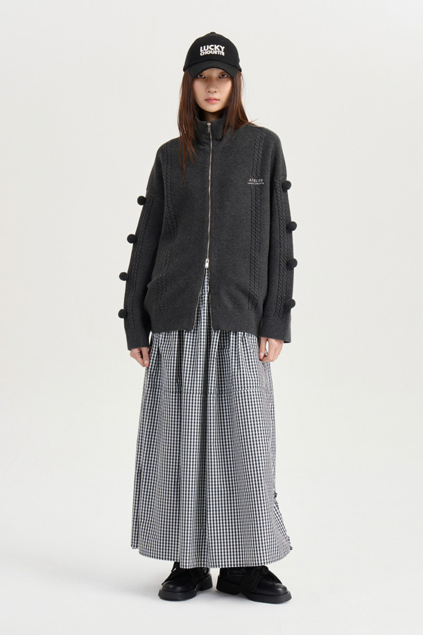 [Atelier] Pompom Zip-up Knit Cardigan (dark grey)