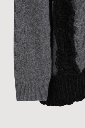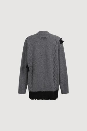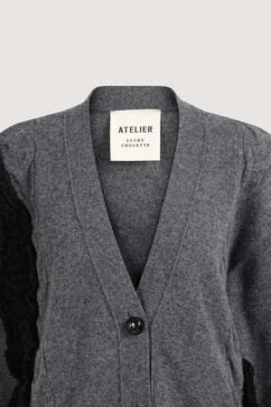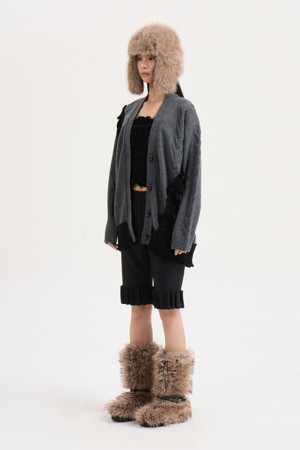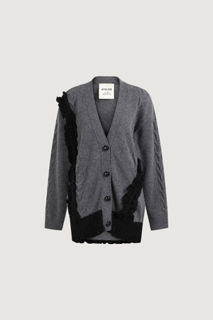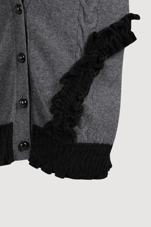[Atelier] Velvet Frill V-Neck Cardigan (dark grey)