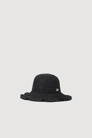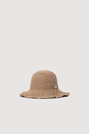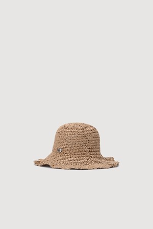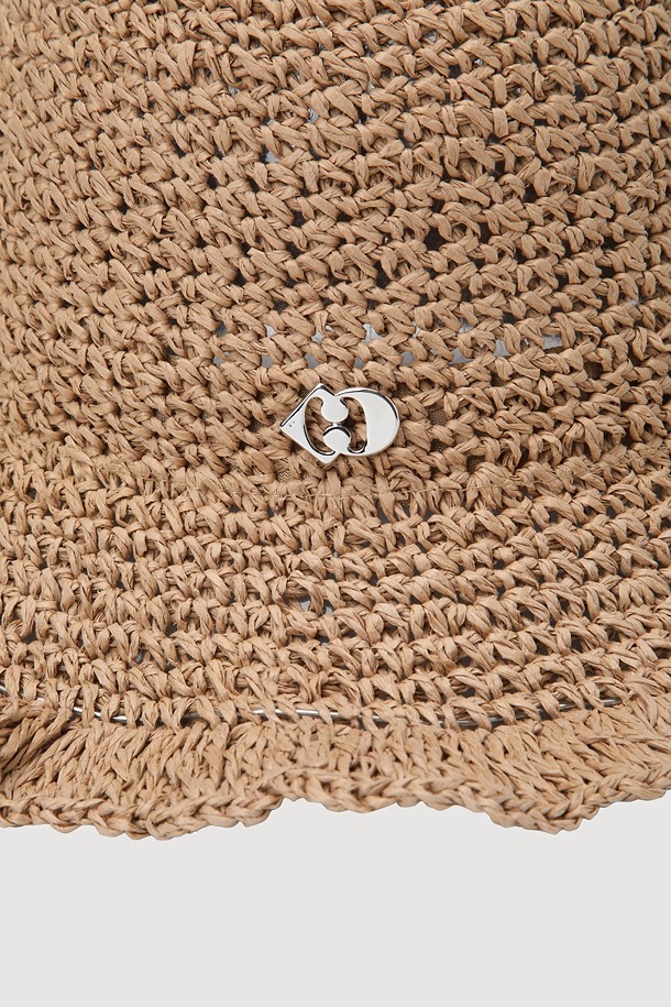 Metal Emblem Bucket Raffia Hat (beige)