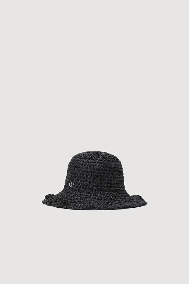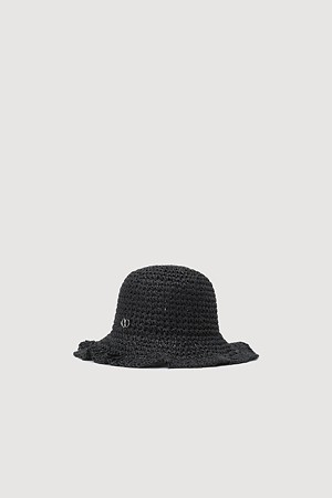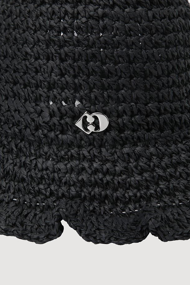 Metal Emblem Bucket Raffia Hat (black)