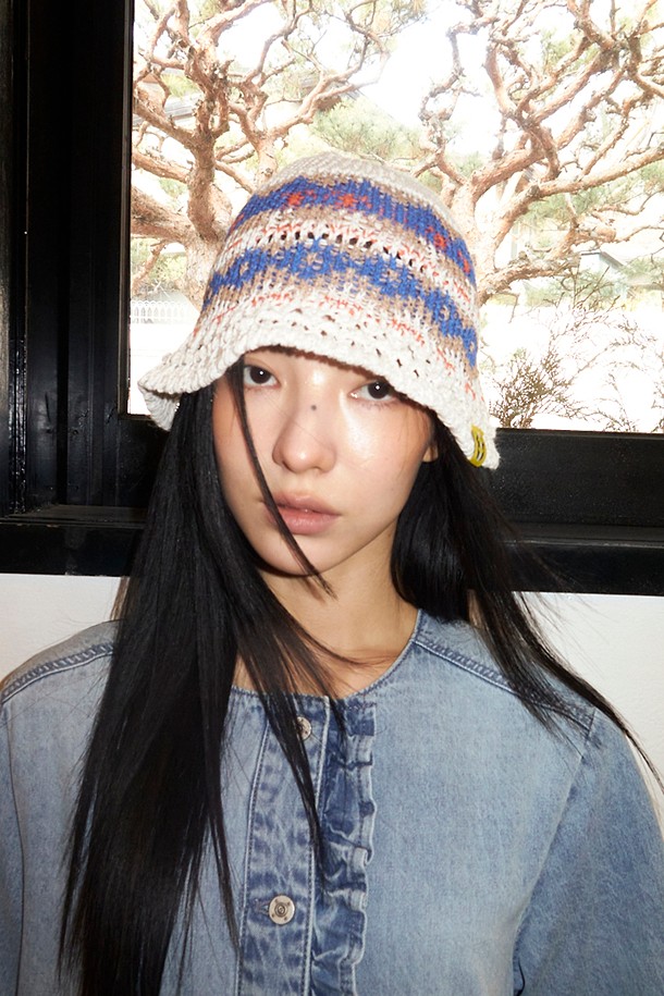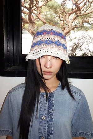 Label Point Color Mix Raffia Hat (ivory)