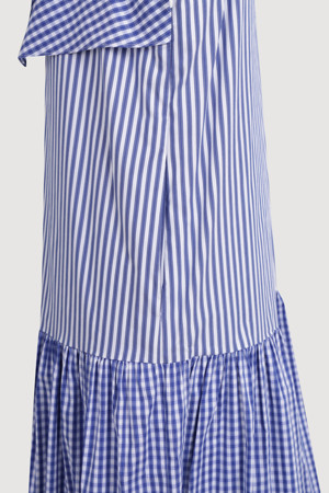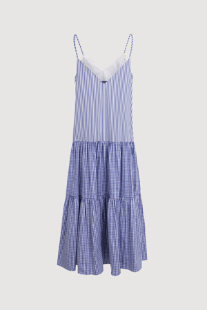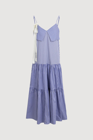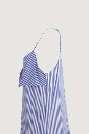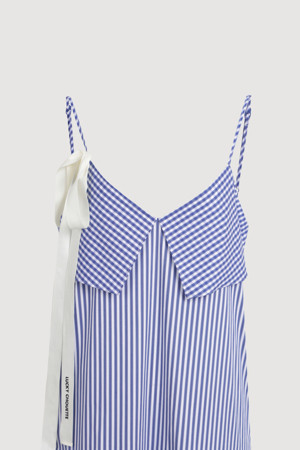 Striped Checkered Mixed Sleeveless Dress (blue)