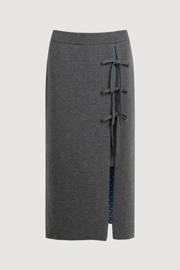 Slit Ribbon Point Knit Skirt