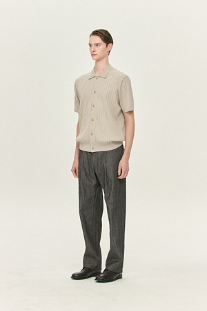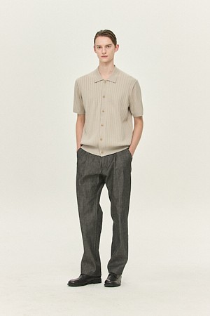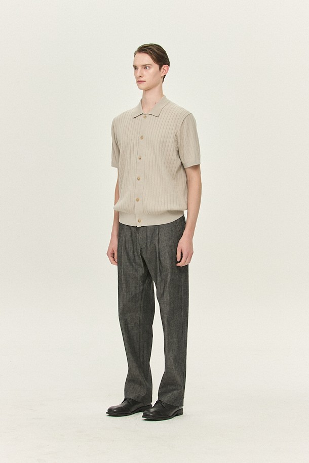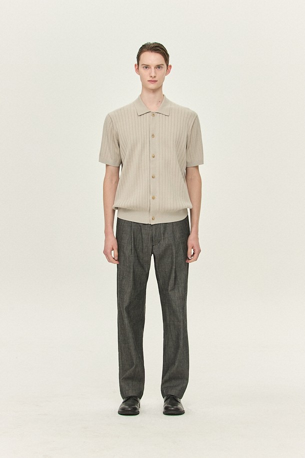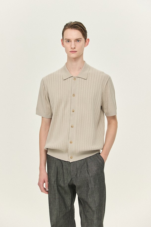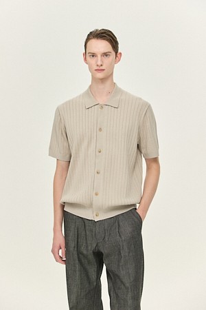 [MOVERE X ROLIAT] 콜라보 카라넥 반팔 풀오픈 스웨터 - 그레이
