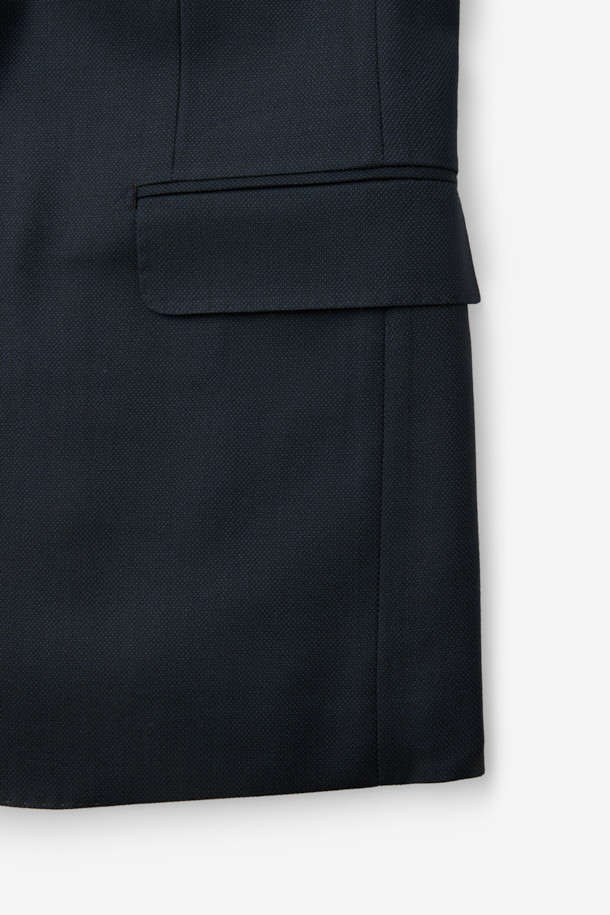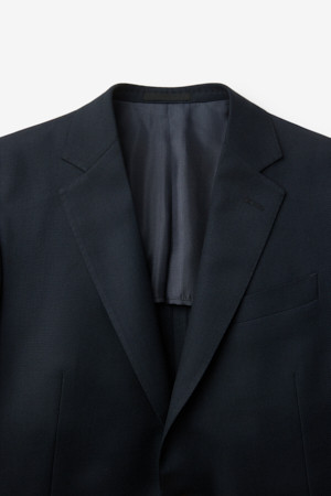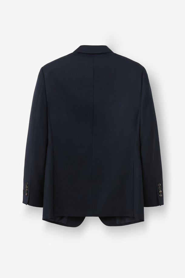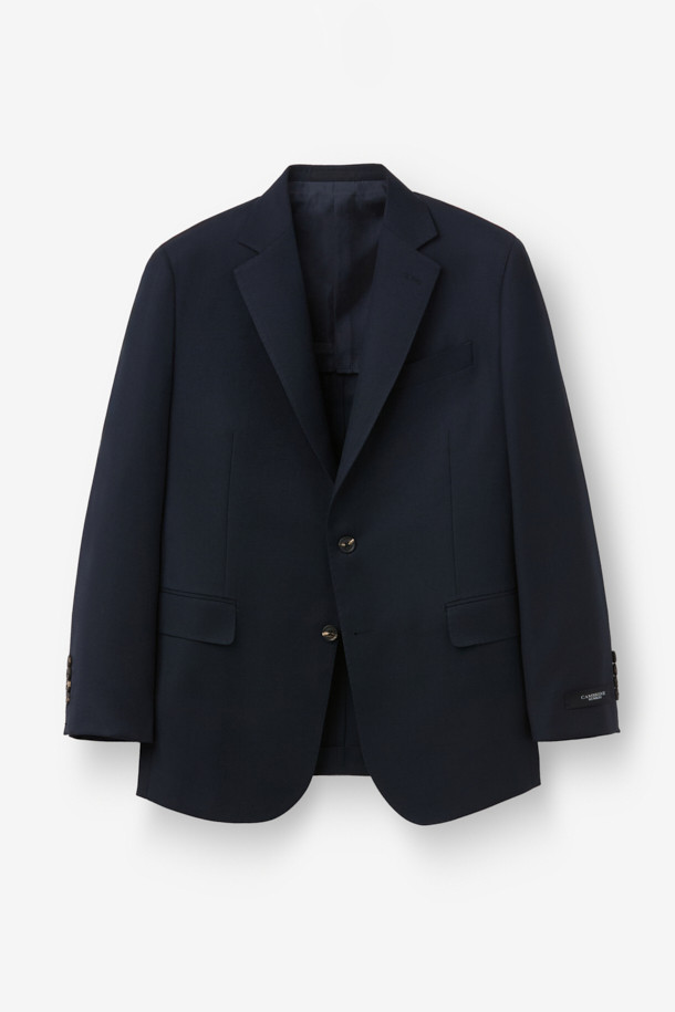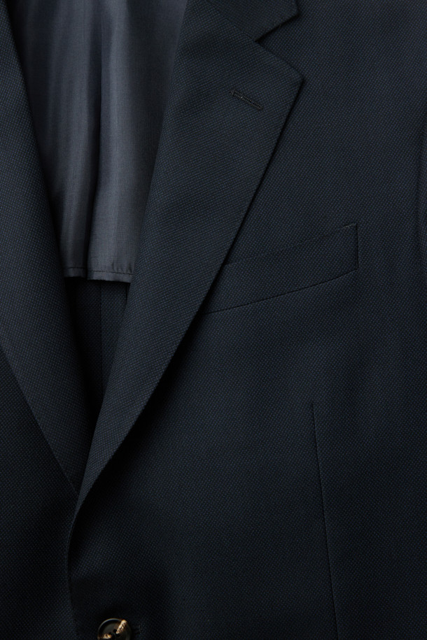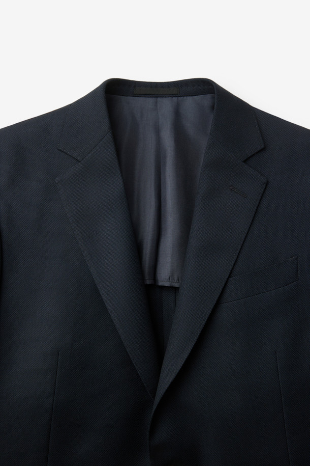 울 조직감 솔리드 수트 자켓 - 네이비