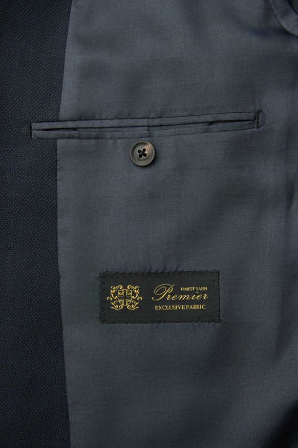 울 조직감 솔리드 수트 - 네이비