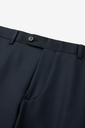 울 조직감 솔리드 수트 팬츠 - 네이비