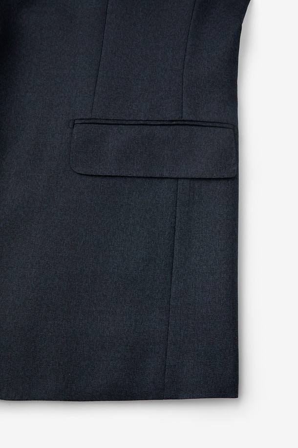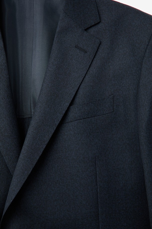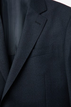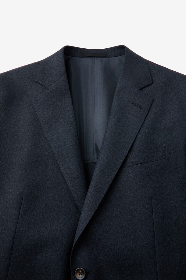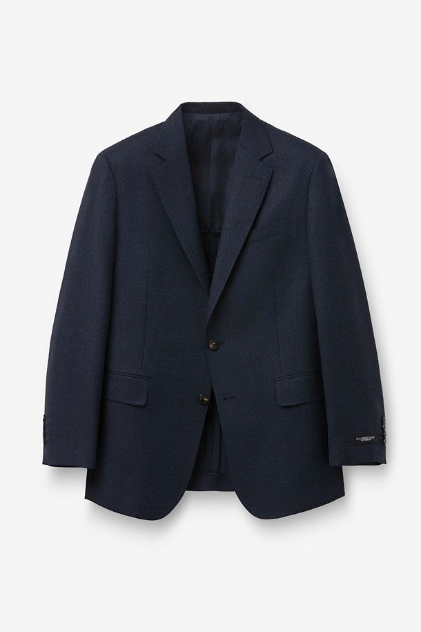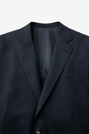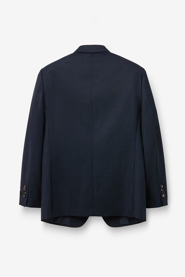 울 투톤 솔리드 수트 자켓 - 네이비