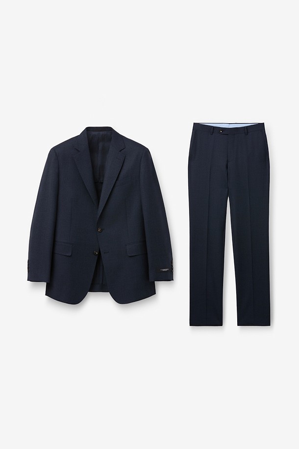 울 투톤 솔리드 수트 - 네이비