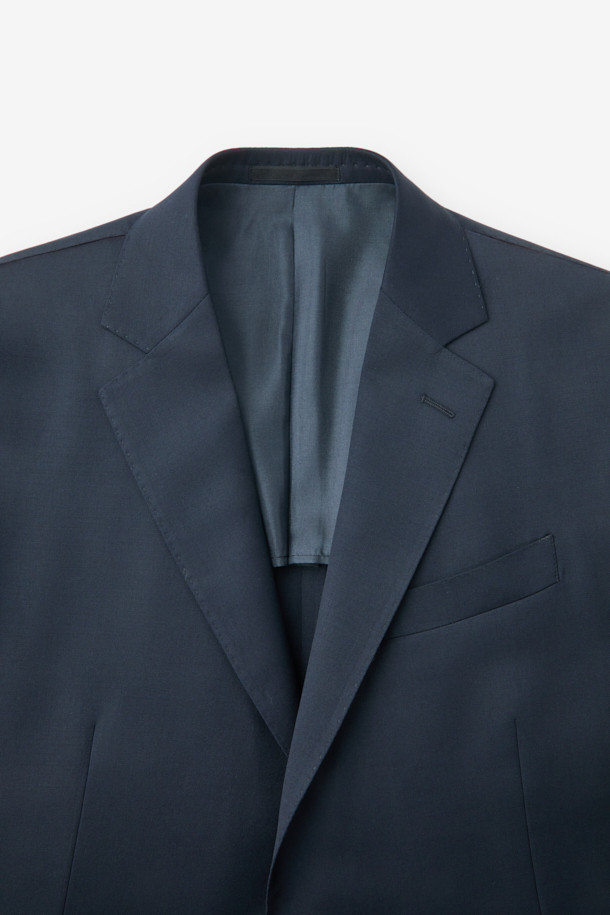 울 솔리드 수트 자켓 - 네이비