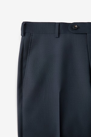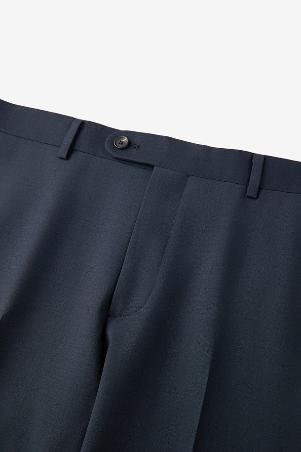 울 조직감 솔리드 수트 팬츠 - 네이비