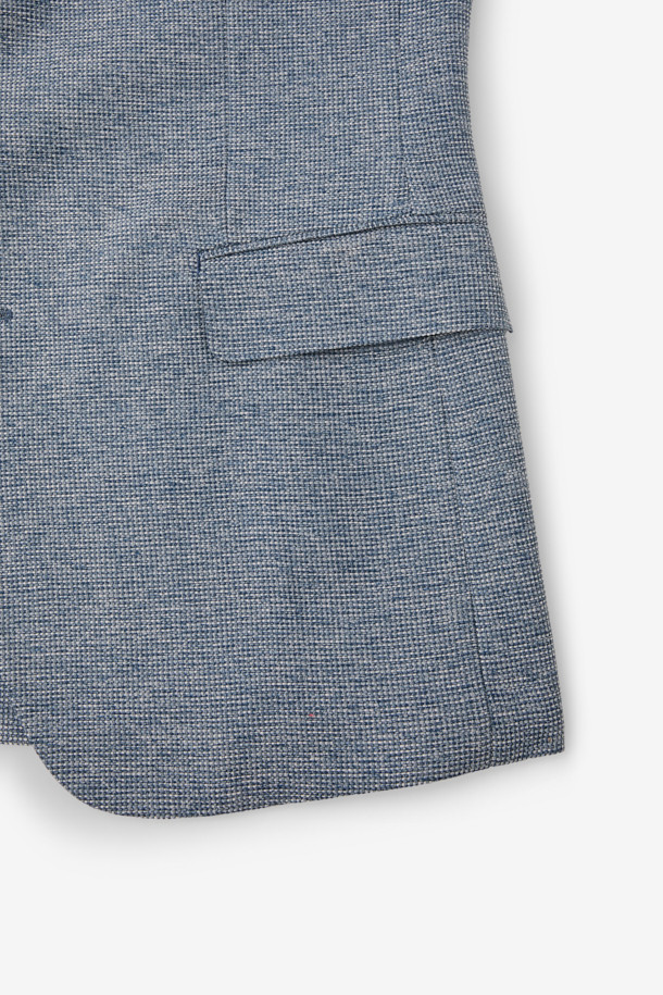 국내 폴리 V종광 솔리드 자켓 - 블루