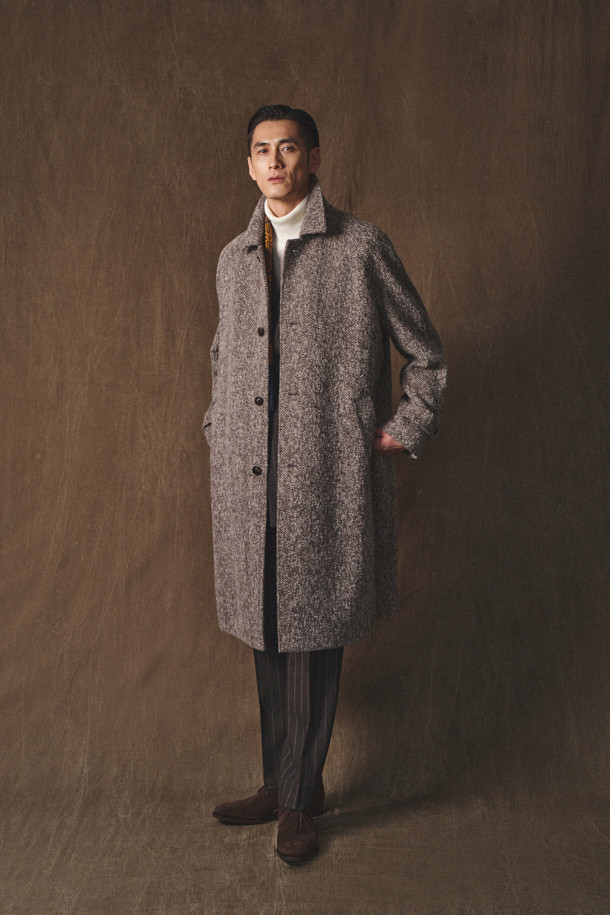 델피노 울알파카캐시 헤링본 발마칸 코트