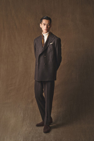 드라고 울 밀드 스트라이프 더블 수트 (Brown)