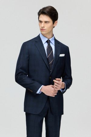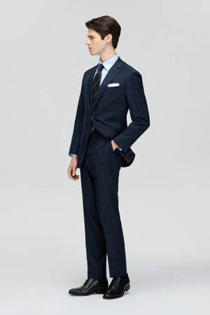 제냐 울 쉐도우체크 수트 (Navy)
