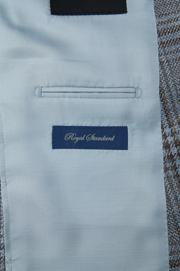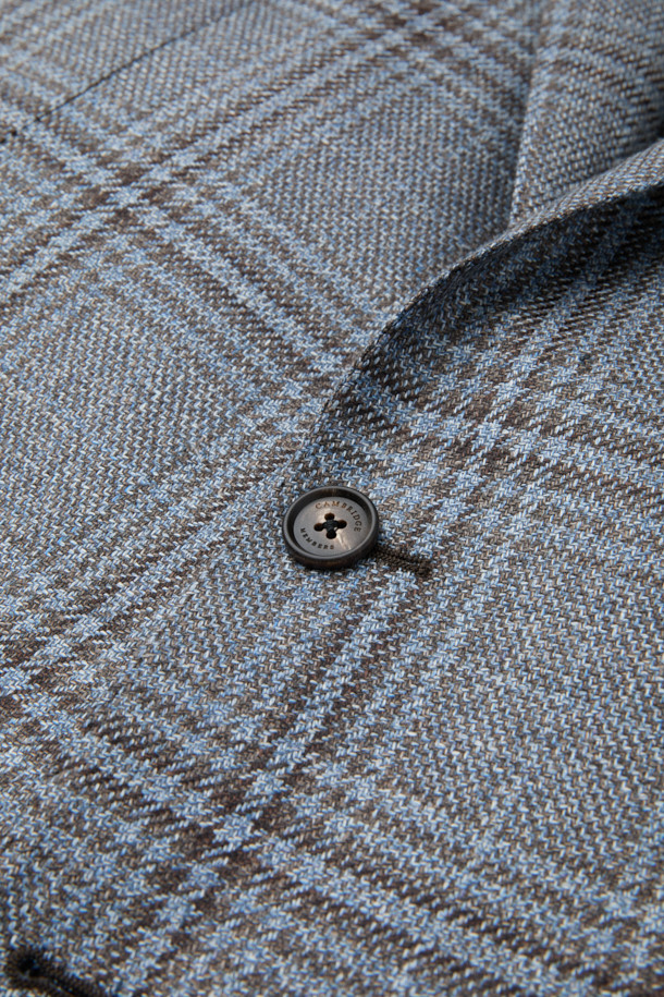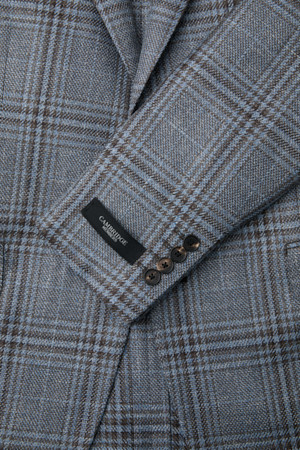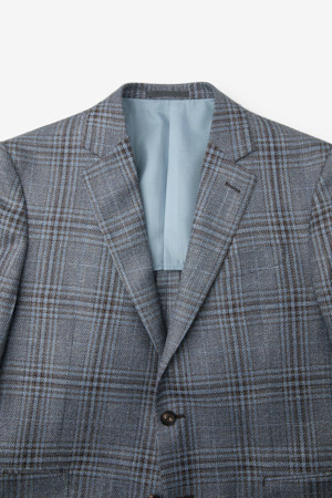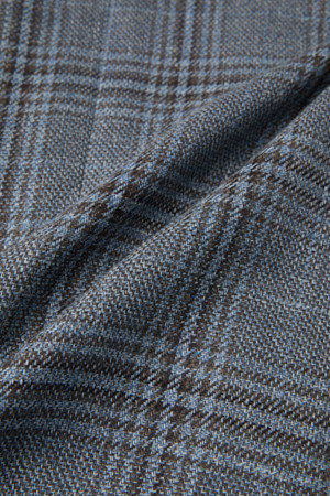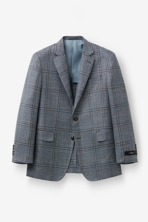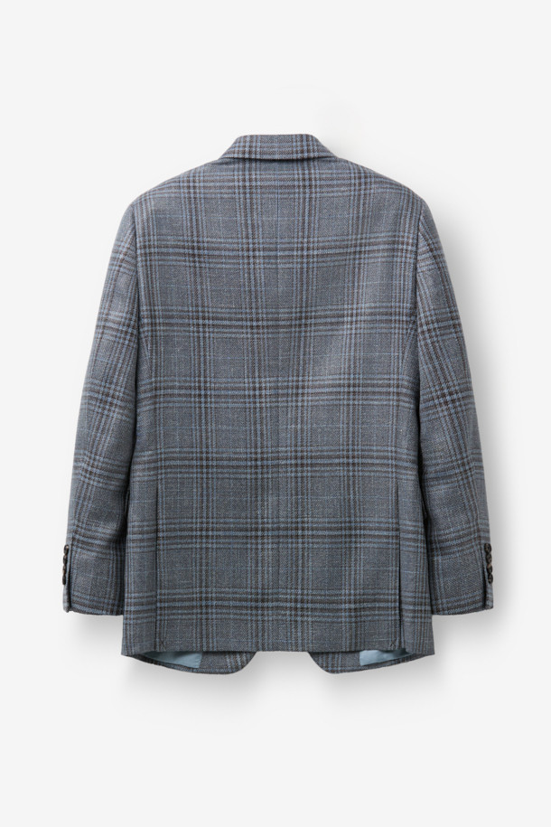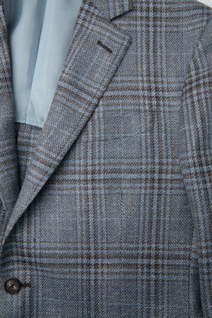 로로피아나 울 실크 리넨 글렌체크 자켓 - 블루
