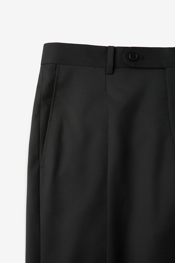 로로피아나 울 솔리드 플리츠 슬랙스 - 블랙