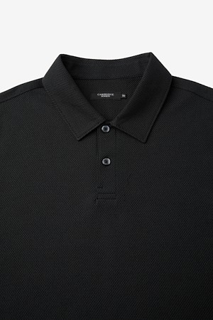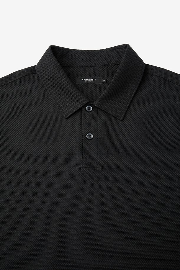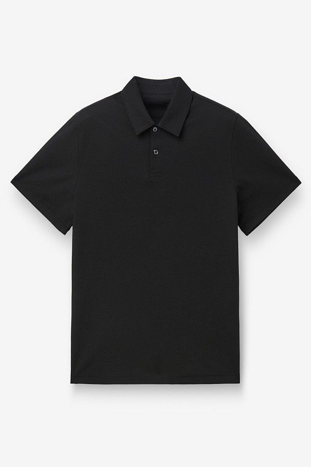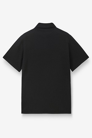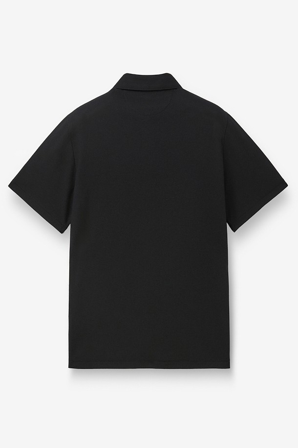 코튼 린넨 카라넥 티셔츠 - 블랙