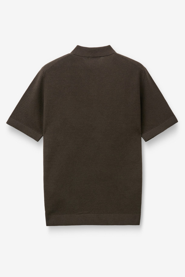 한지 코튼 솔리드 카라넥 니트