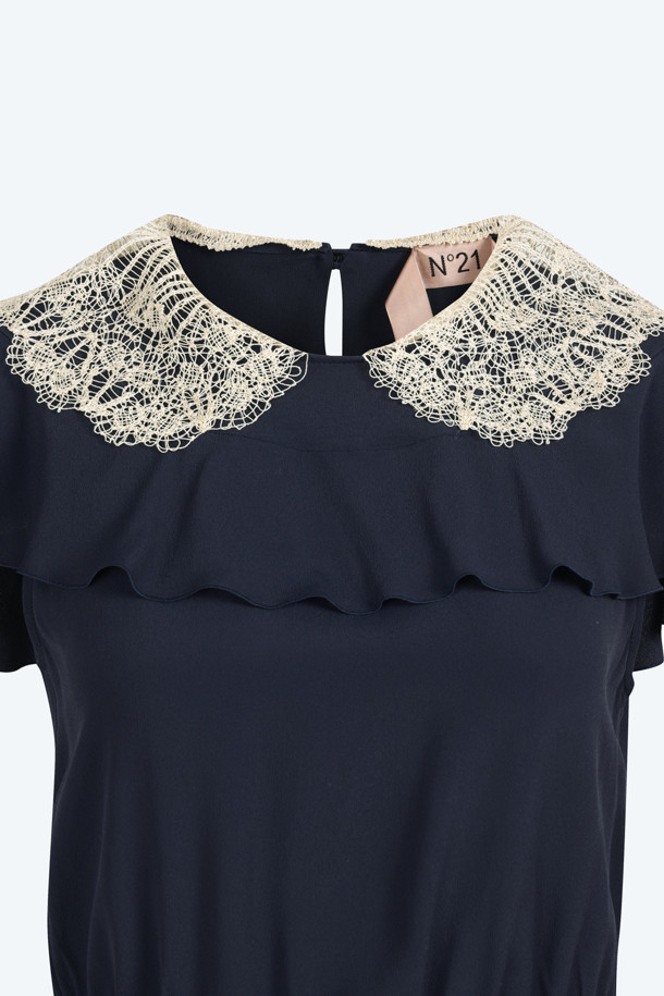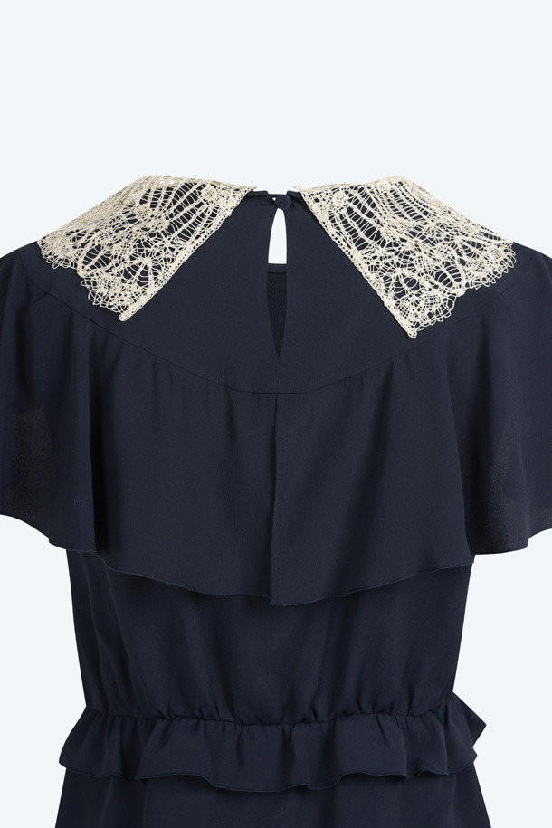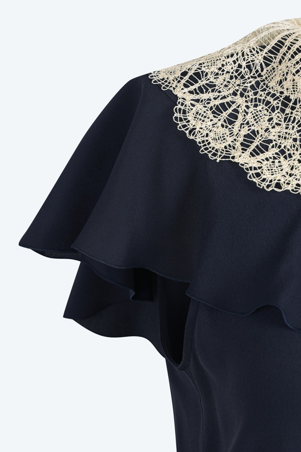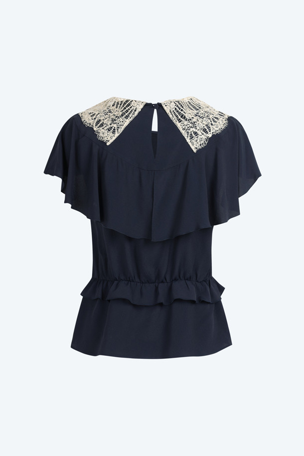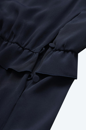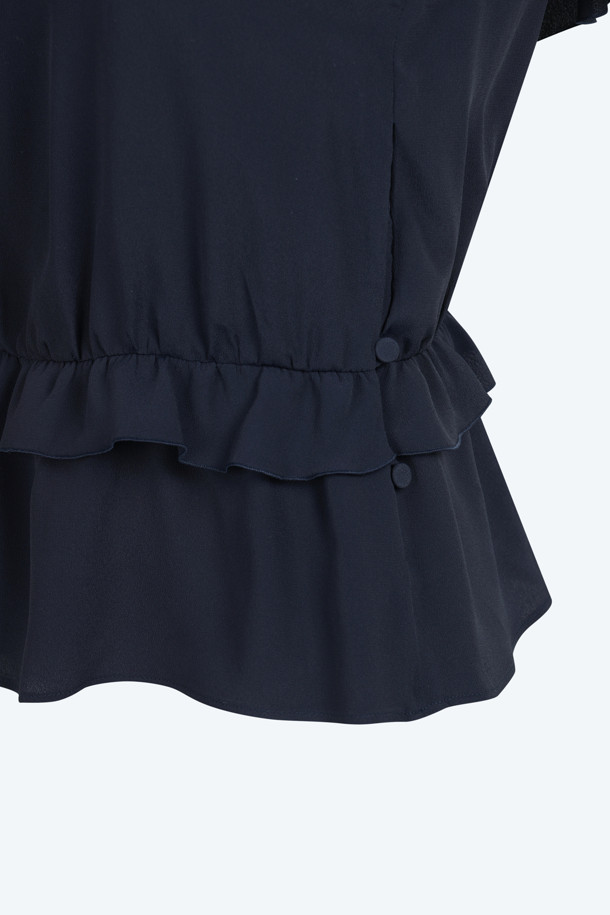 네이비 셔링 블라우스