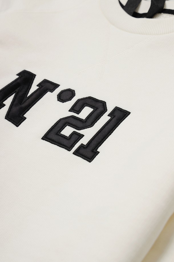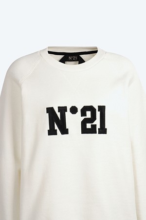 크림 로고 프린트 스웻셔츠