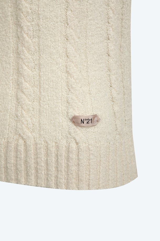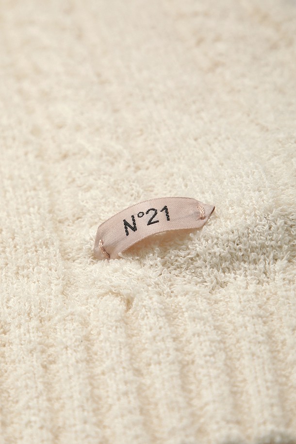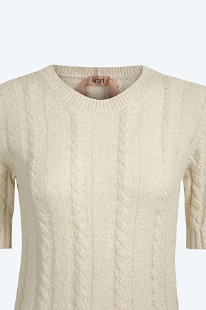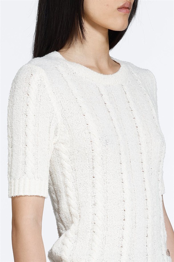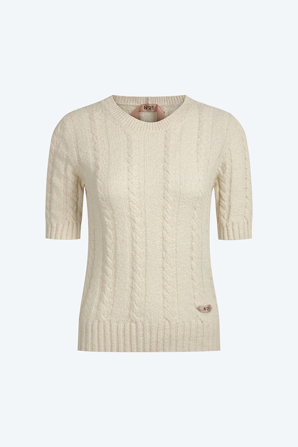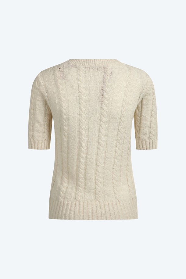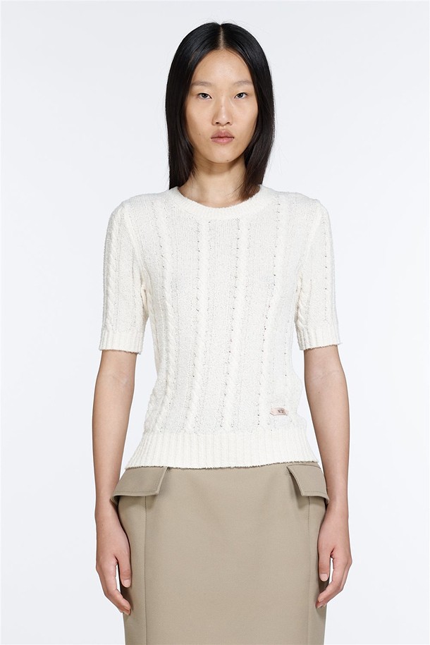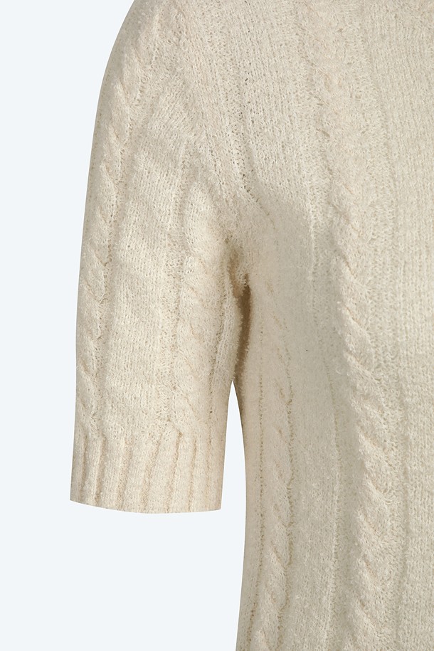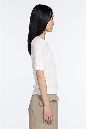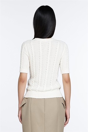 화이트 라운드넥 하프 니트