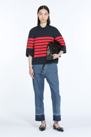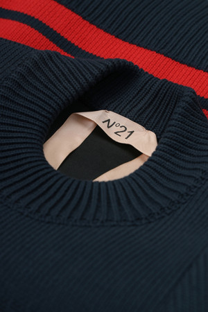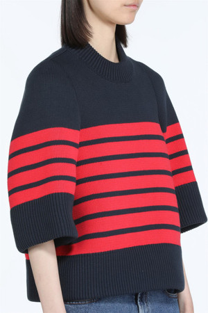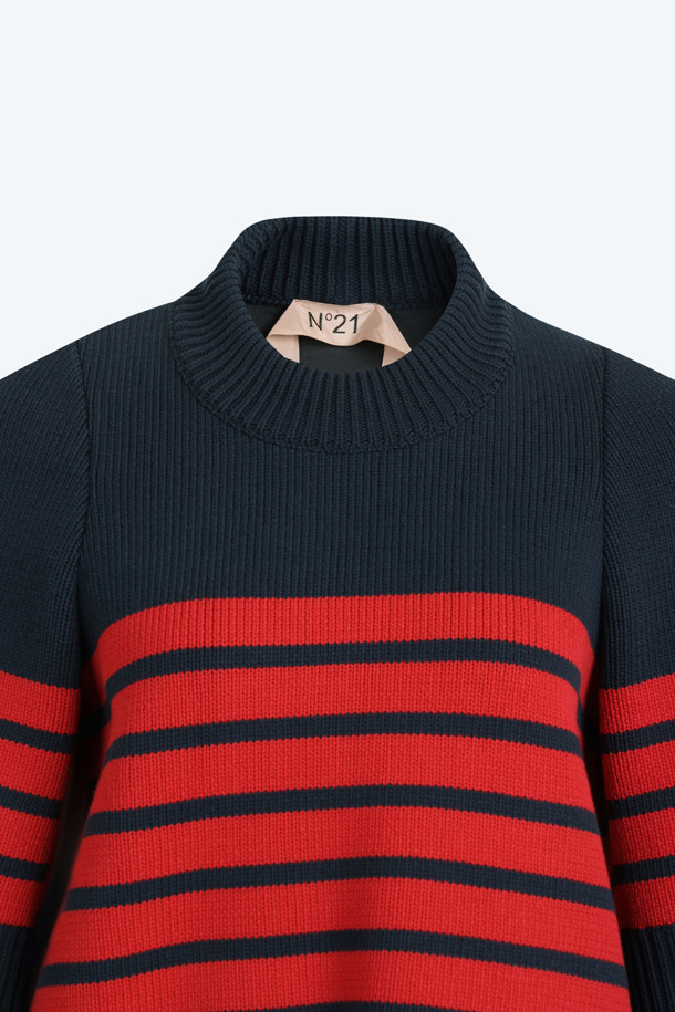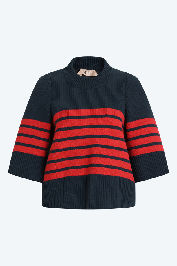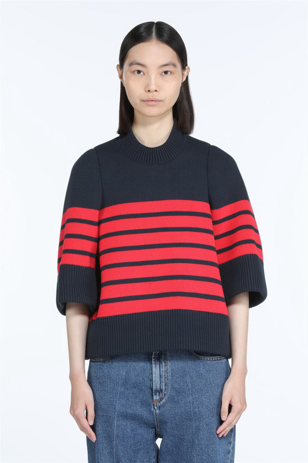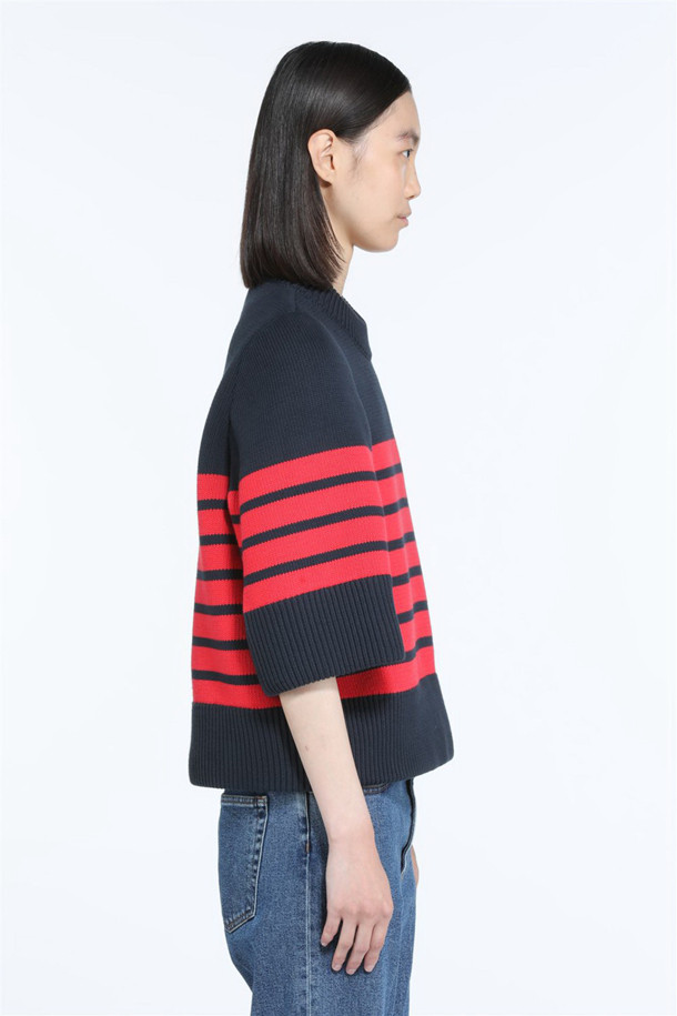 레드 스트라이프 코튼 니트