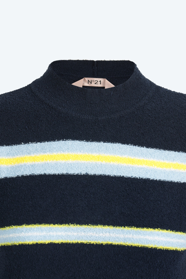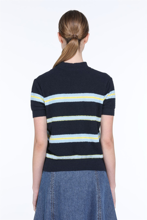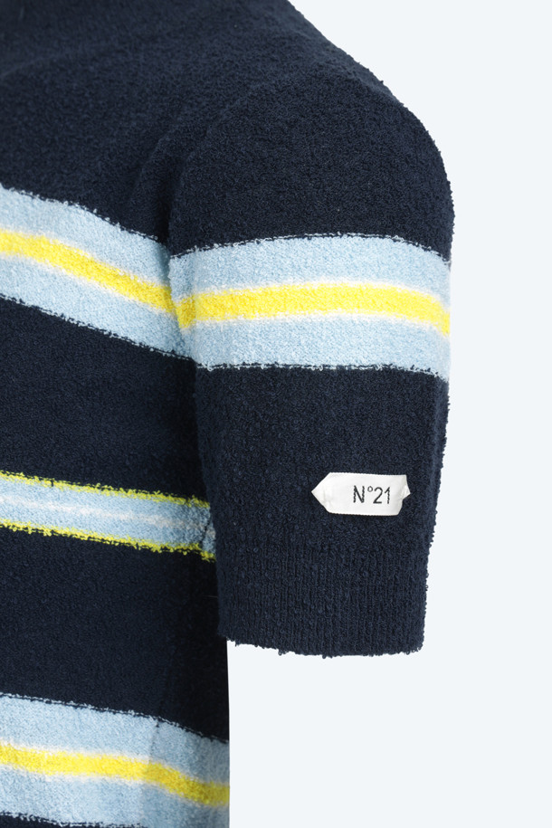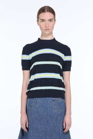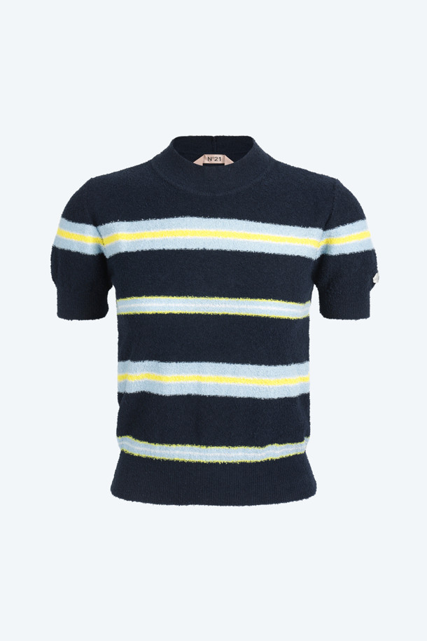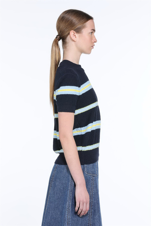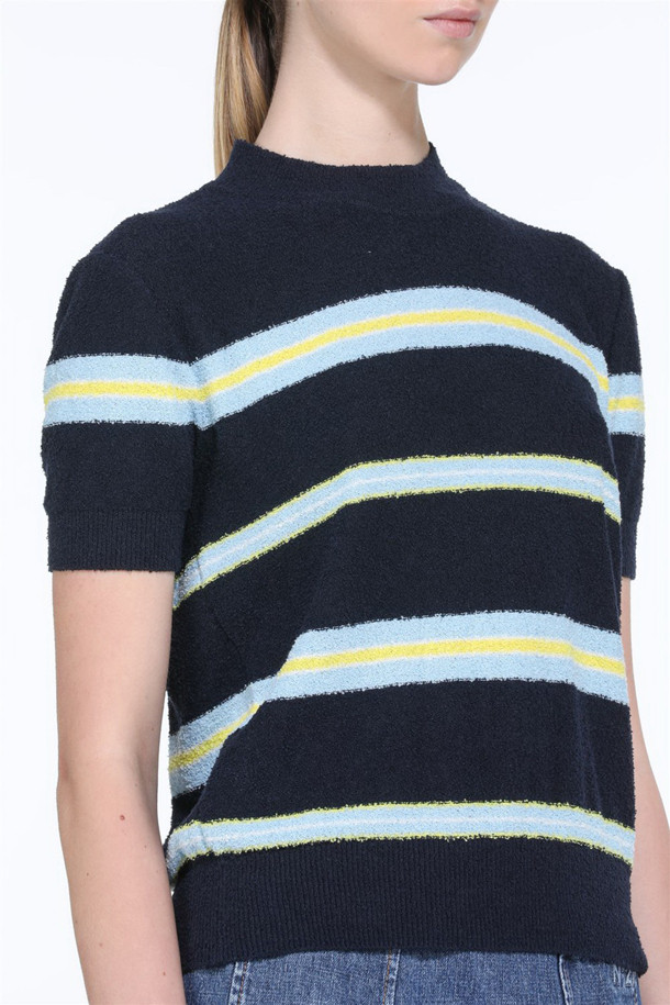 블루 스트라이프 반팔 니트