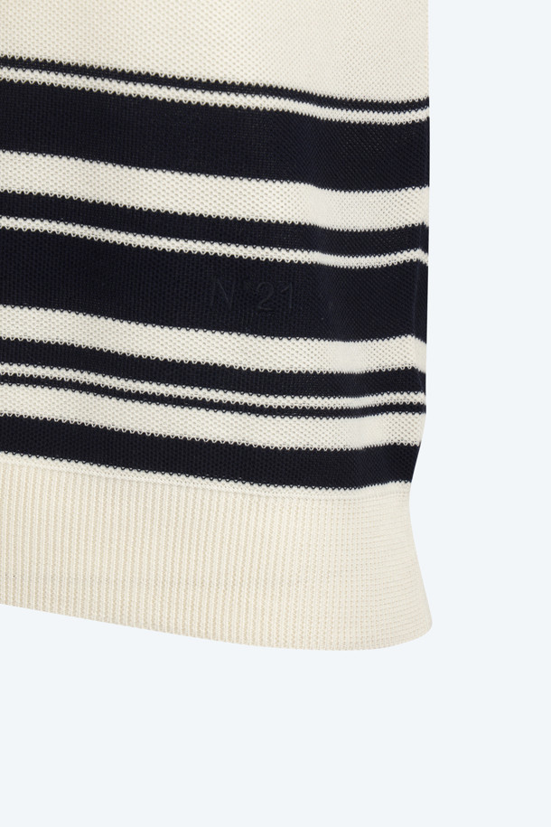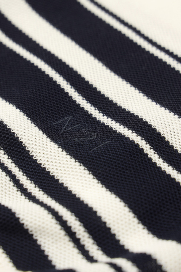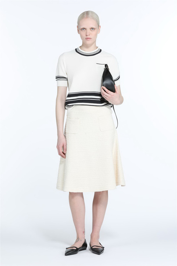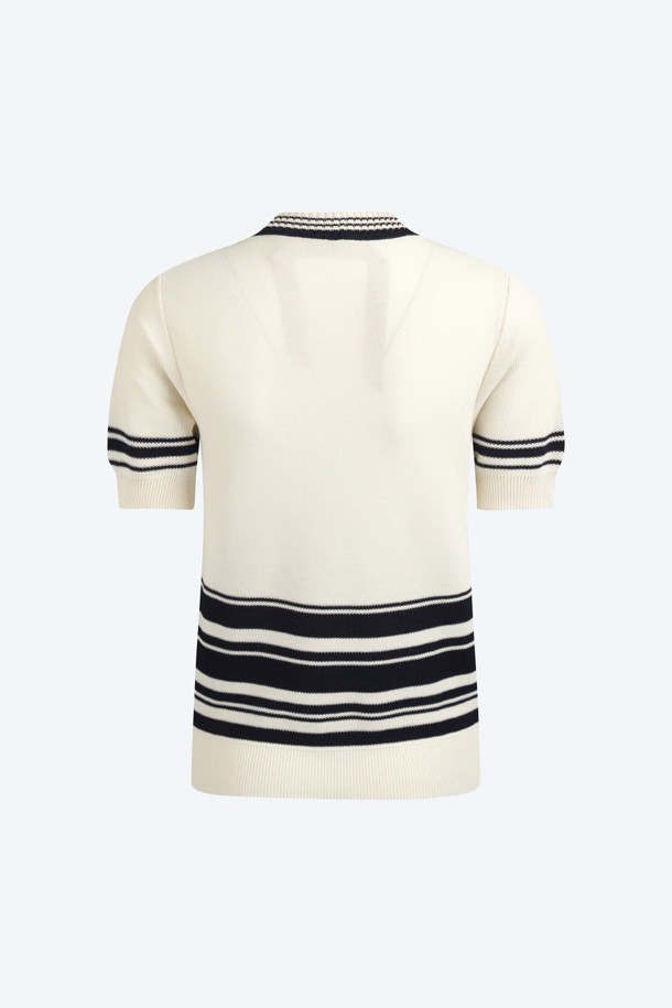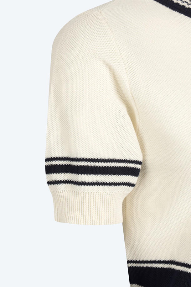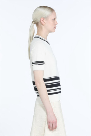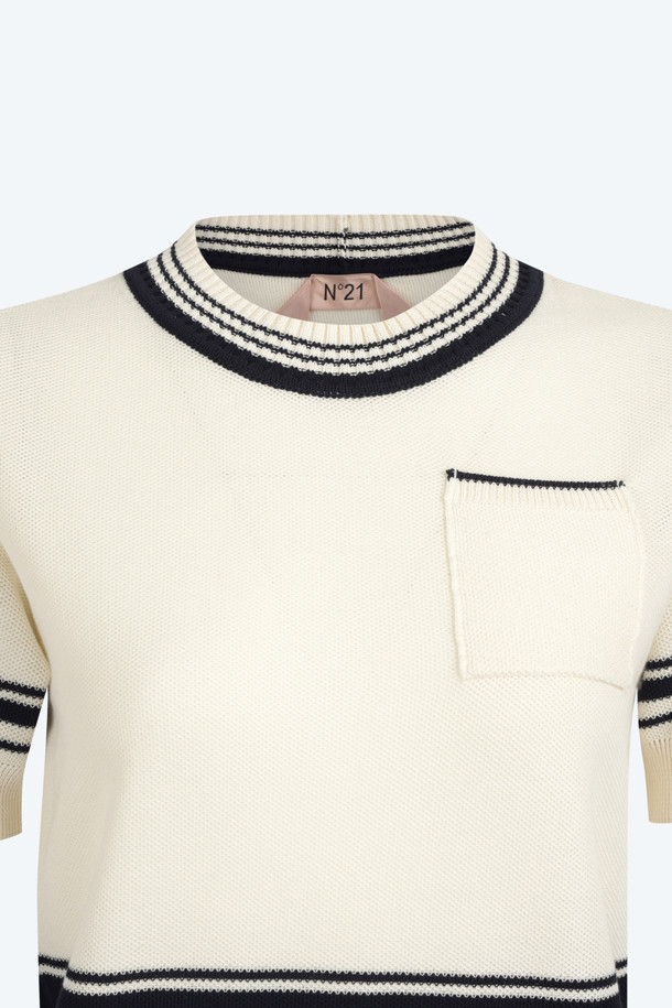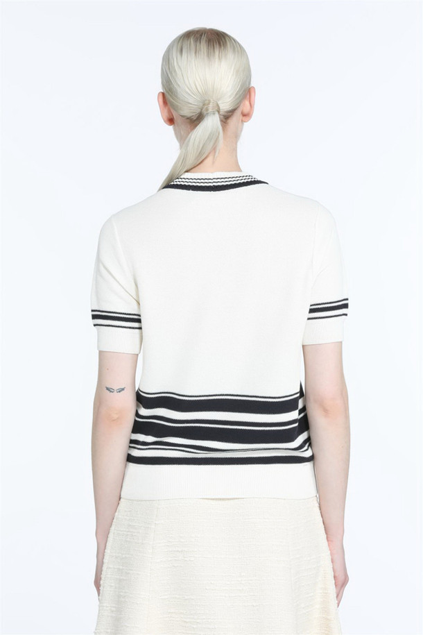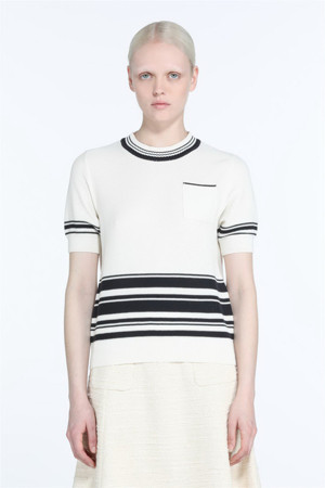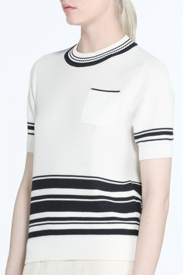 화이트 스트라이프 포켓 반팔 니트