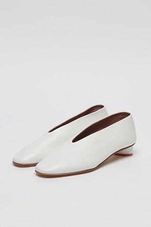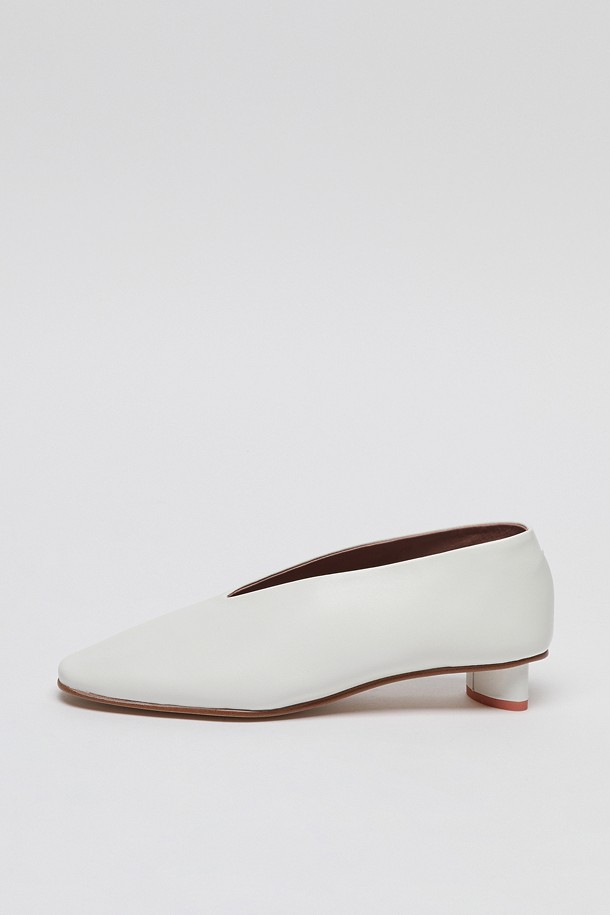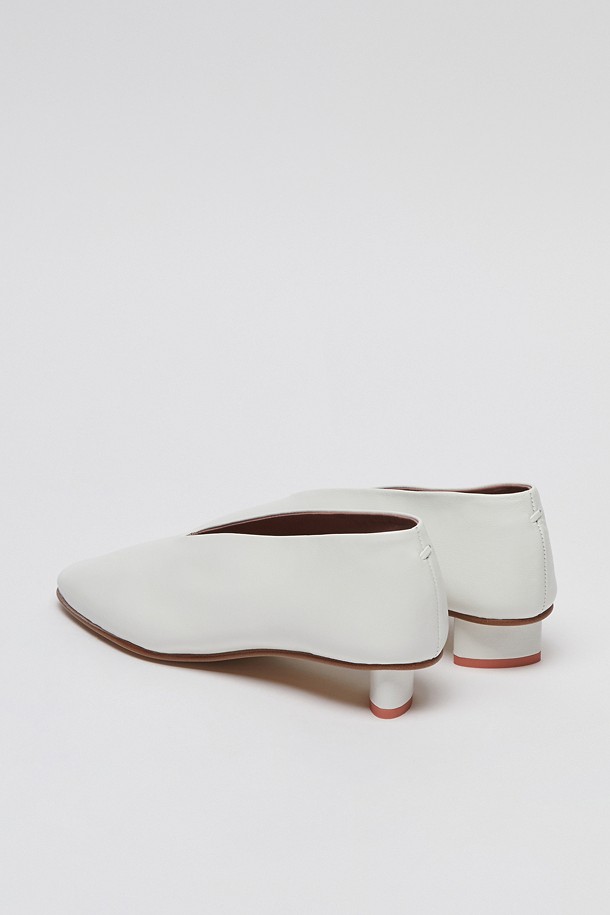 아카이브앱크의 시그니처 펌프스로, 스퀘어토와 발등 V라인 디자인이 발 쉐입을 슬림하게 연출합니다. 비대칭의 타원 굽이 포인트이며, 라텍스 쿠셔닝으로 편안한 착화감을 제공합니다.