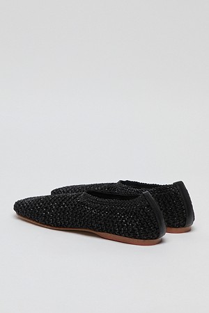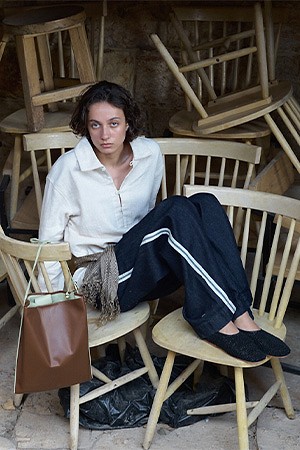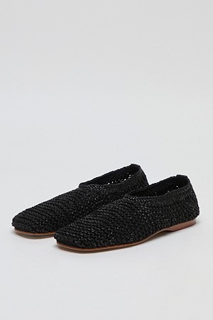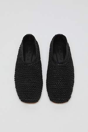 가죽 메쉬 어퍼가 발을 부드럽게 감싸는 플랫 슈즈입니다. 유연한 창 구조로 자연스러운 롤링감을 주며, 고무 밴드 입구로 발을 안정적으로 지지합니다.