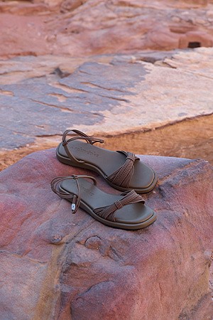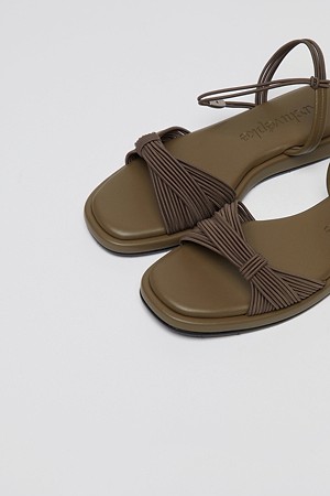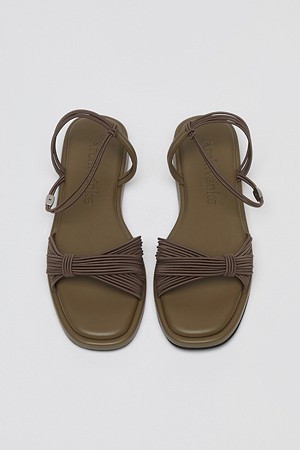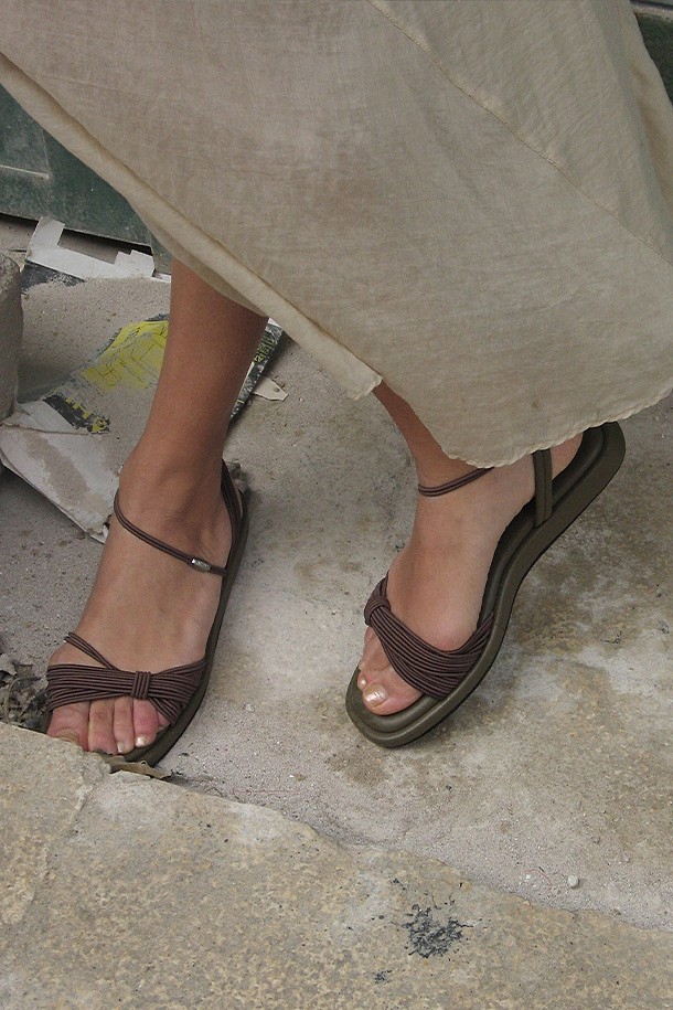 엘라스틱 스트링 어퍼가 발에 부드럽게 밀착되는 샌들입니다. 가느다란 스트링이 발 라인을 슬림하게 연출하며, 데일리 룩부터 휴양지 스타일까지 잘 어울립니다.