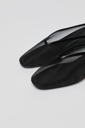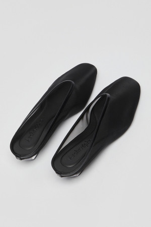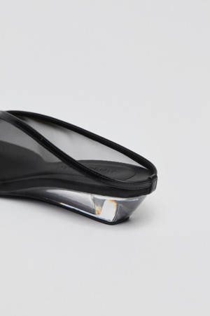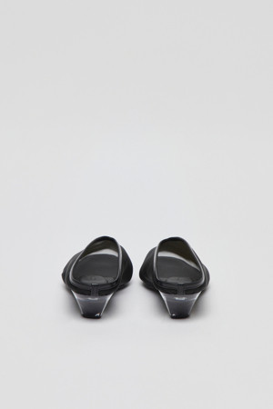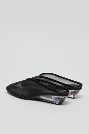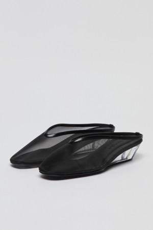 은은한 메쉬 소재와 클리어 굽이 포인트인 슈즈입니다. 균형 잡힌 라인과 3.5cm의 안정적인 높이로 편안한 착화감을 제공하며, 포멀부터 캐주얼까지 데일리로 잘 어울립니다.