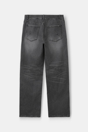그레이 루즈 스트레이트 밴딩 데님