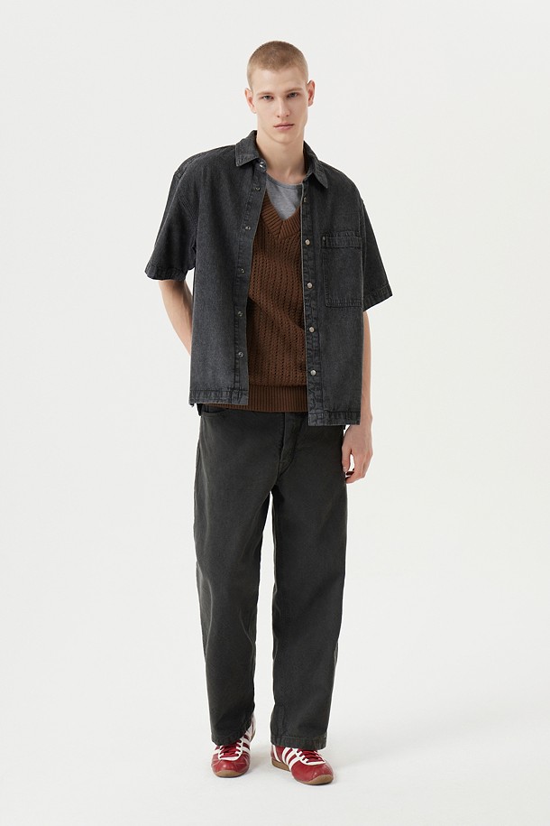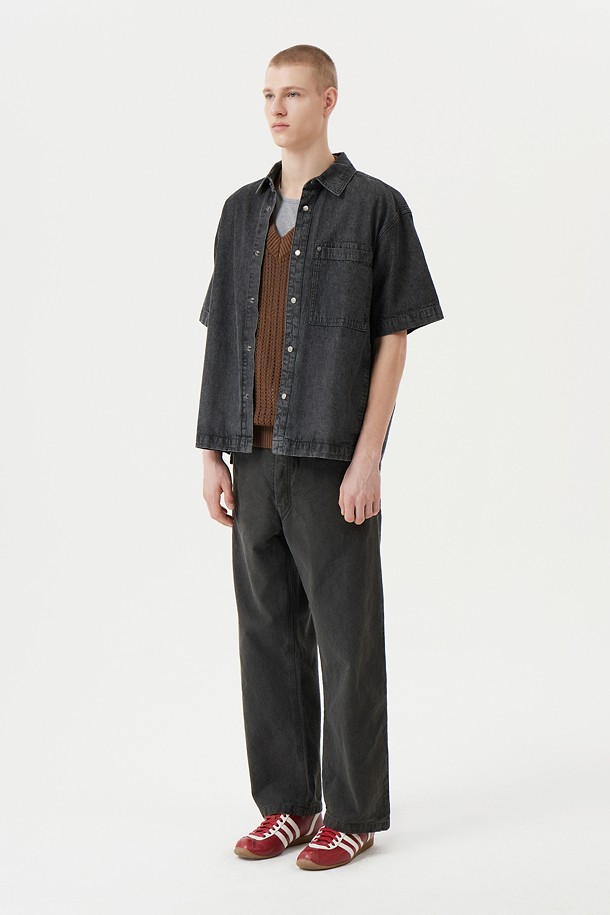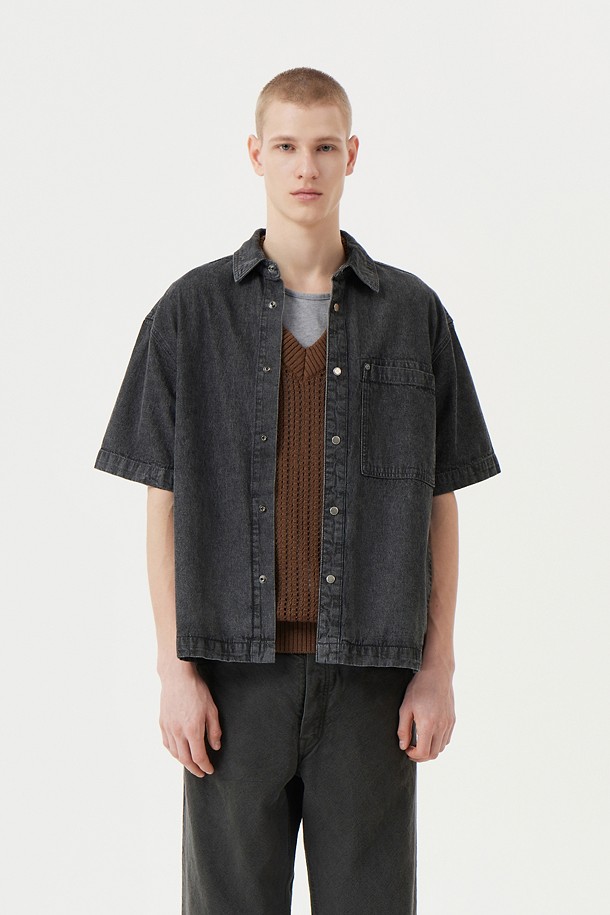 그레이 데님 반팔 셋업 아우터형 셔츠