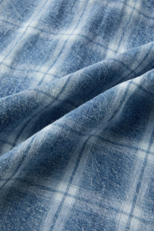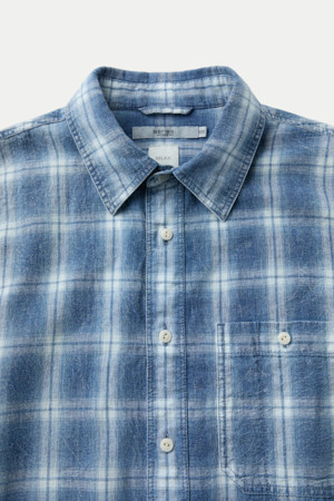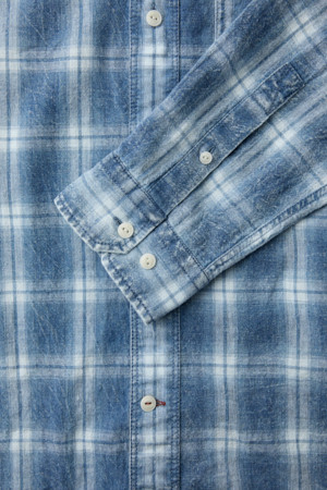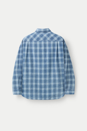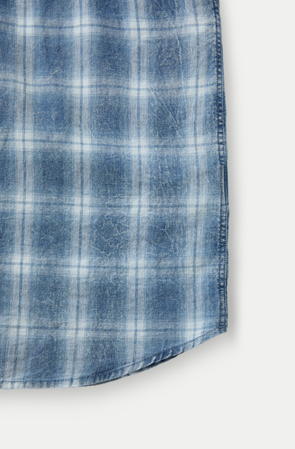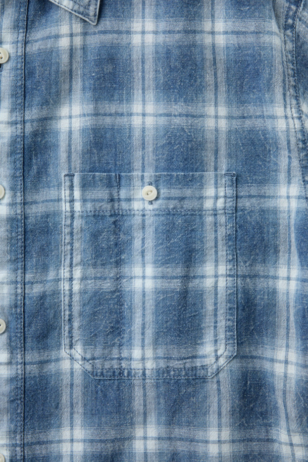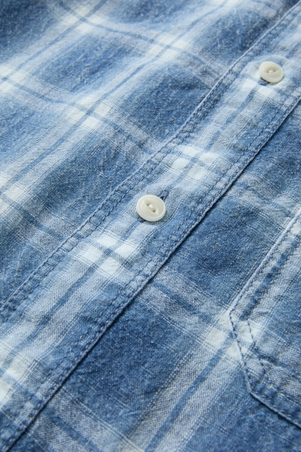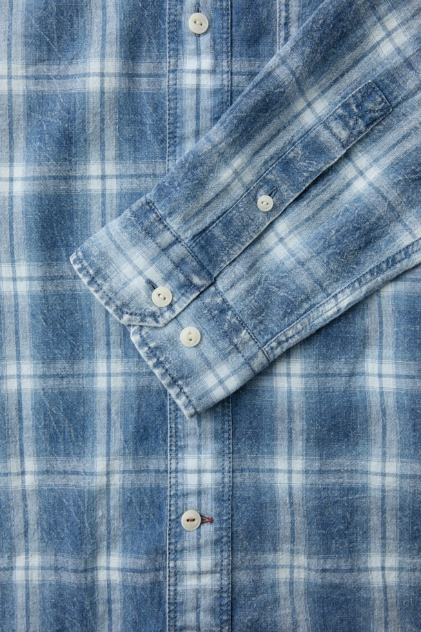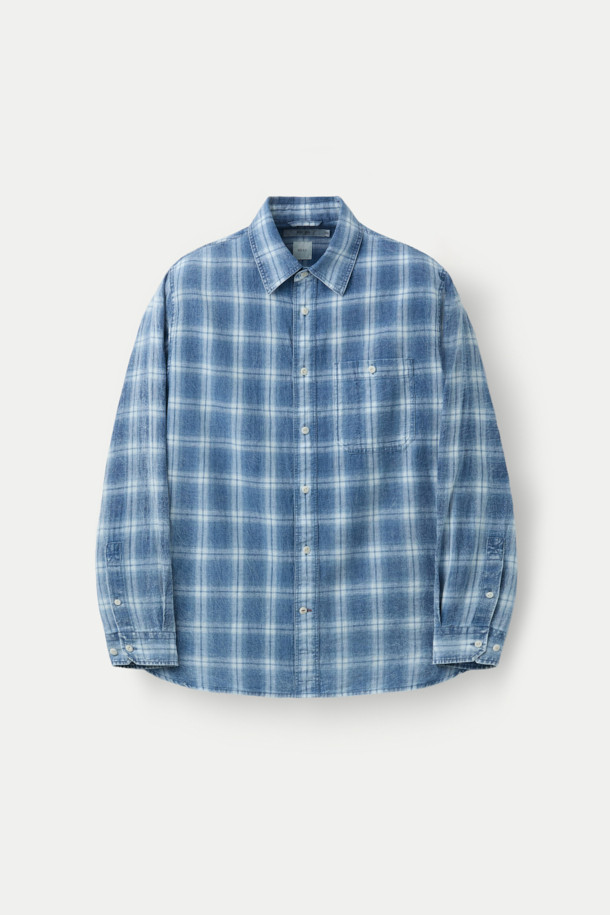 인디고 워싱 린넨혼방 체크셔츠