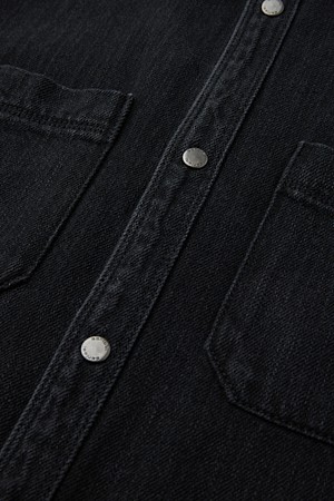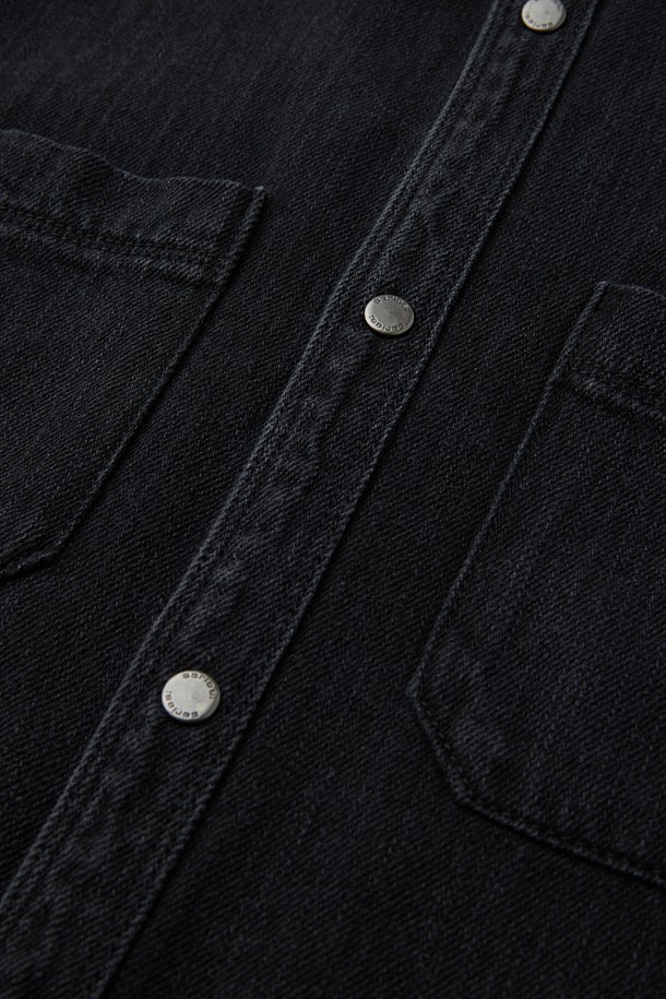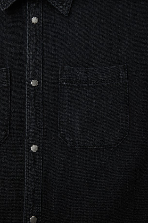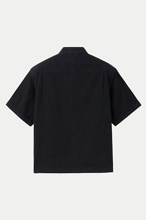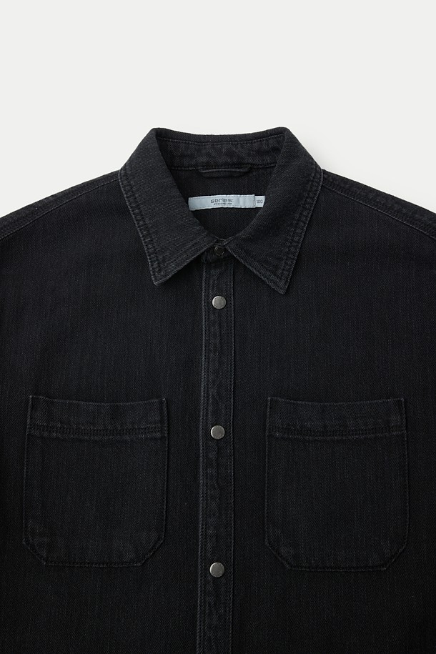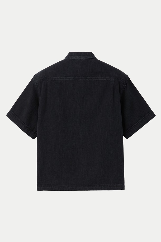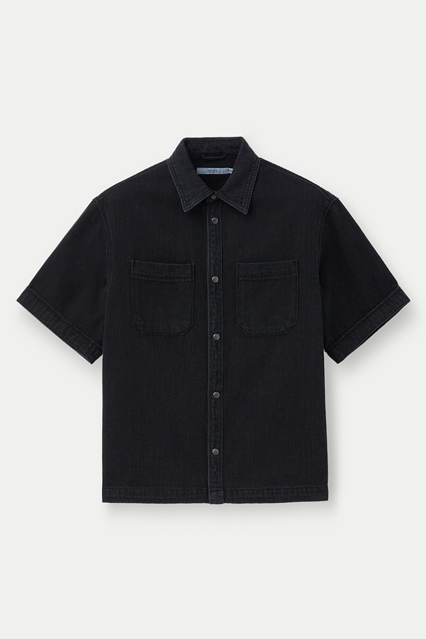 (셋업) 블랙 데님 반팔 오버핏 셔츠