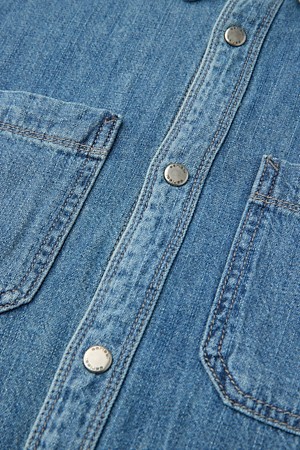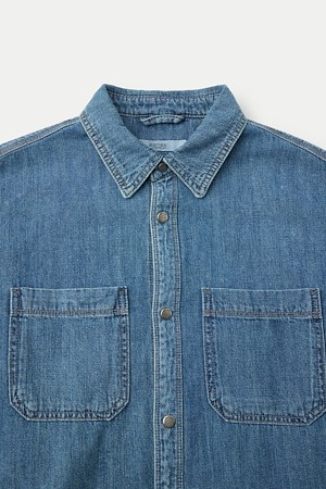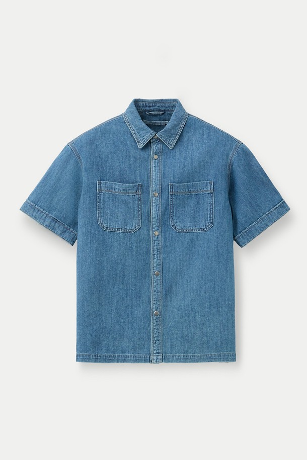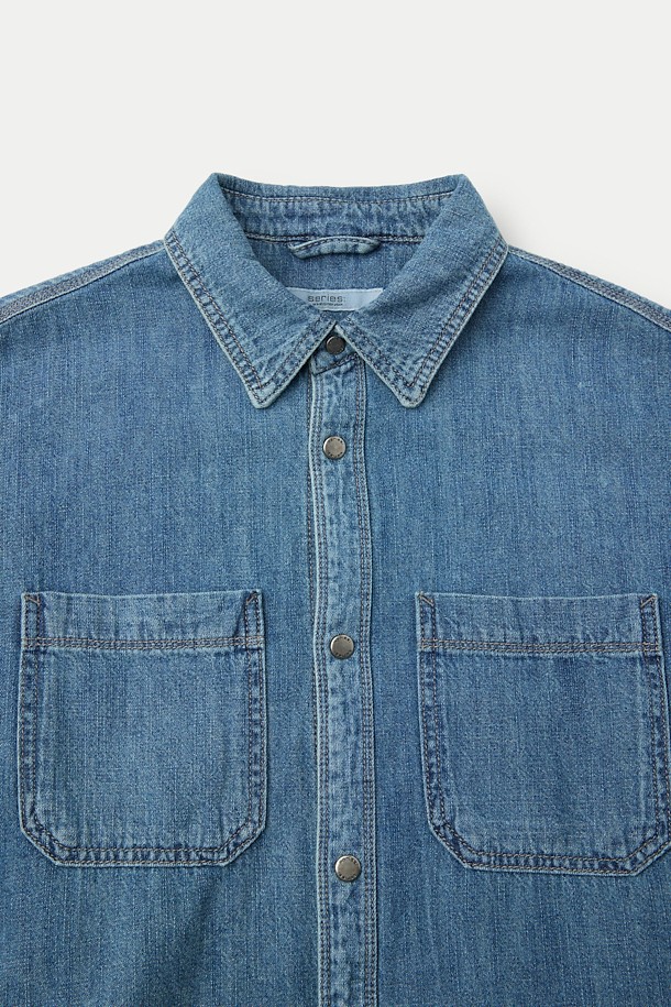 (셋업) 연청 데님 반팔 오버핏 셔츠