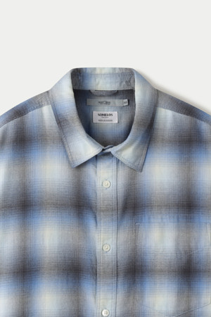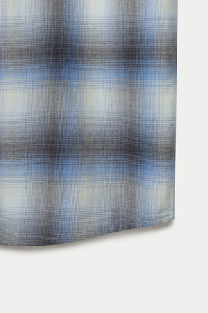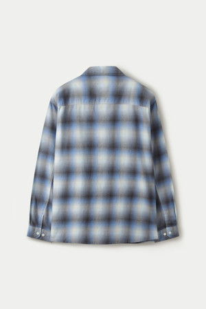 SOMELOS 블루 옐로우 옴브레 체크 오버형 셔츠