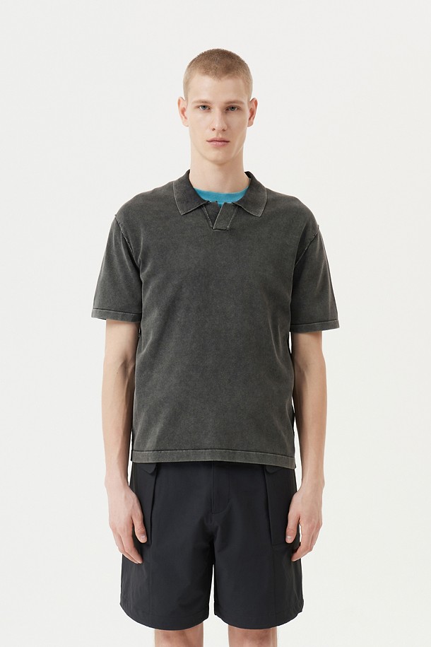 Ice Cotton 다잉 오픈 칼라 스웨터