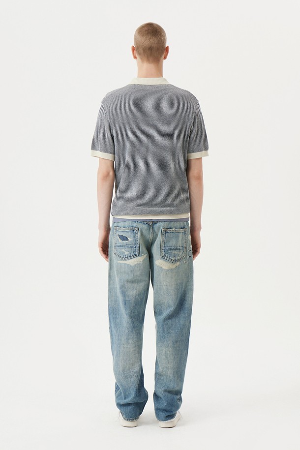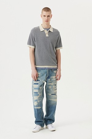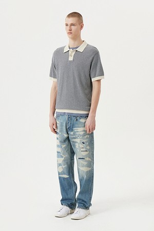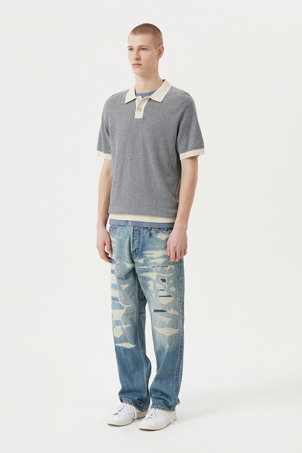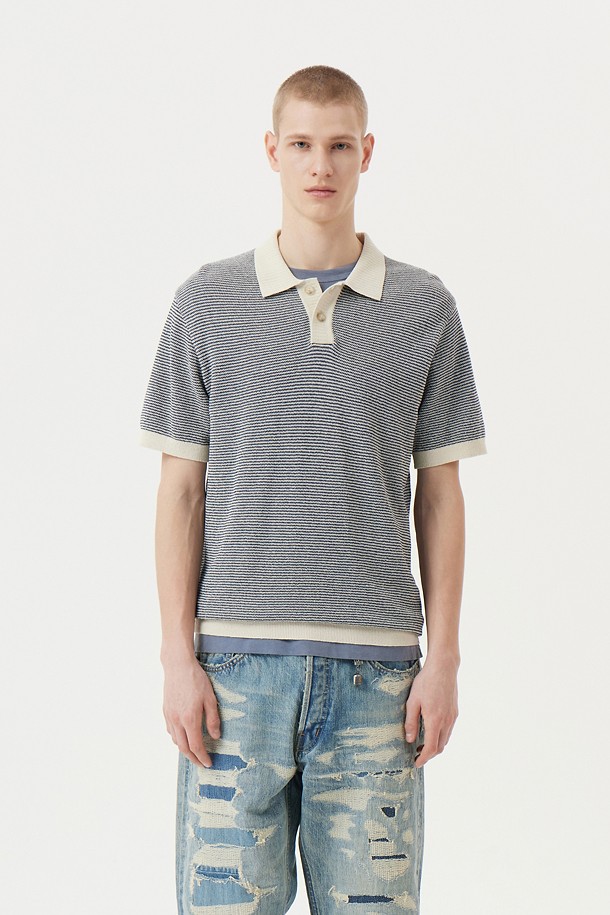 Ice Cotton 스트라이프 하프 슬리브 폴로 스웨터