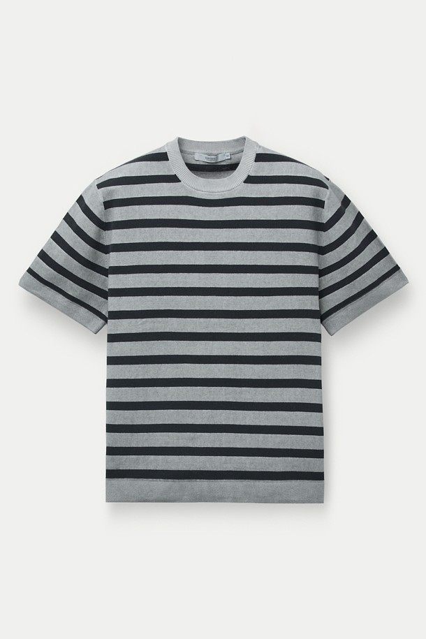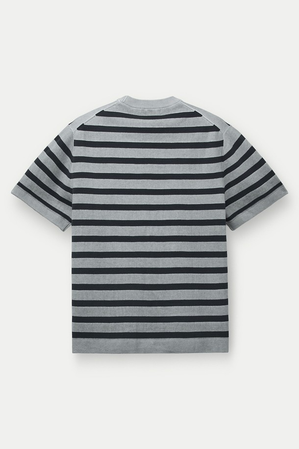 가먼트 다잉 스트라이프 크루넥 스웨터