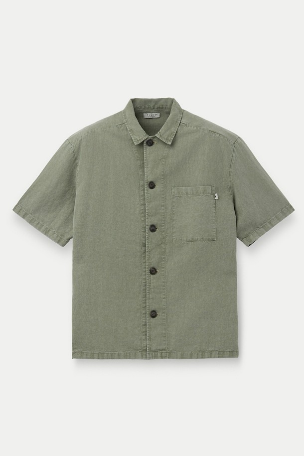 FIVER MARBLED 워시 쇼츠 슬리브 리넨 셔츠